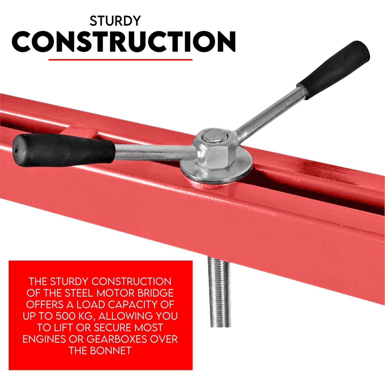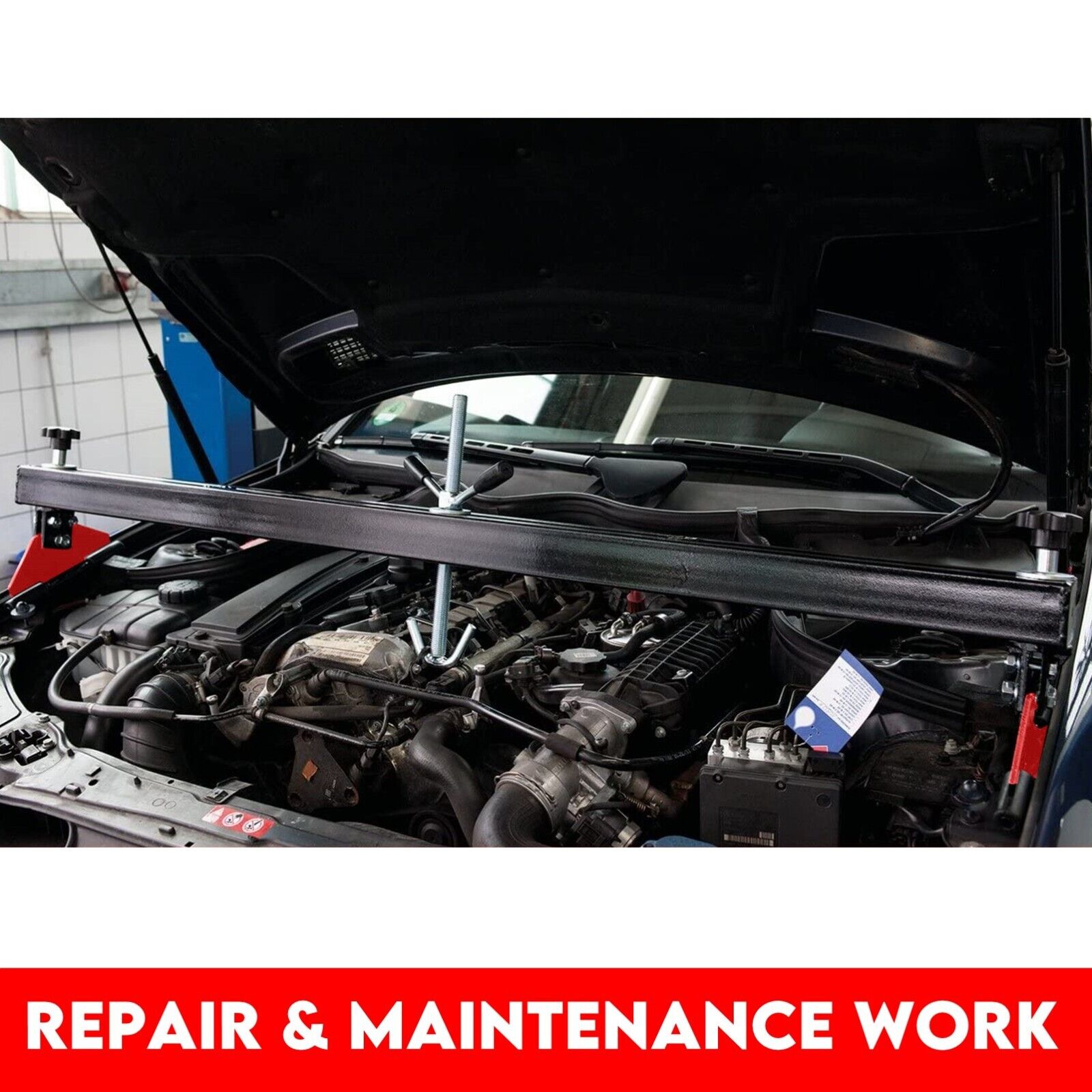 Fiernero Engine Support Beam is constructed with heavy duty powder coated steel for durability. This 500 KG capacity support beam is ideal for providing support for engine transmission repairs.