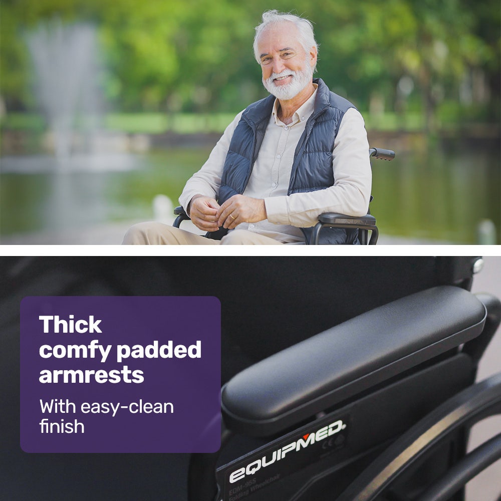 Activating the easy access park brake levers locks the wheels into position a perfect time to pull out some reading material from the backrest pouch! This Equipmed Wheelchair certainly ticks all the boxes. Make the smart choice and enjoy well-deserved mobility!
