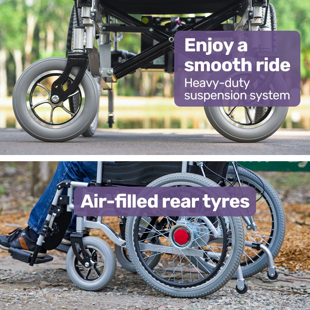 - Large 22 rear wheels for a smooth ride