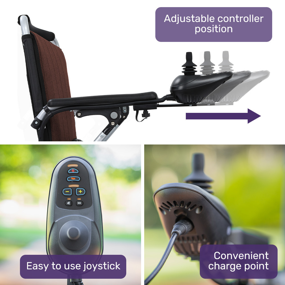 EQUIPMED Ultra-Light Power Wheelchair, Tight Turning, Airline Approved, ARTG Certified, Aluminium Frame, Lithium Battery, Brown
