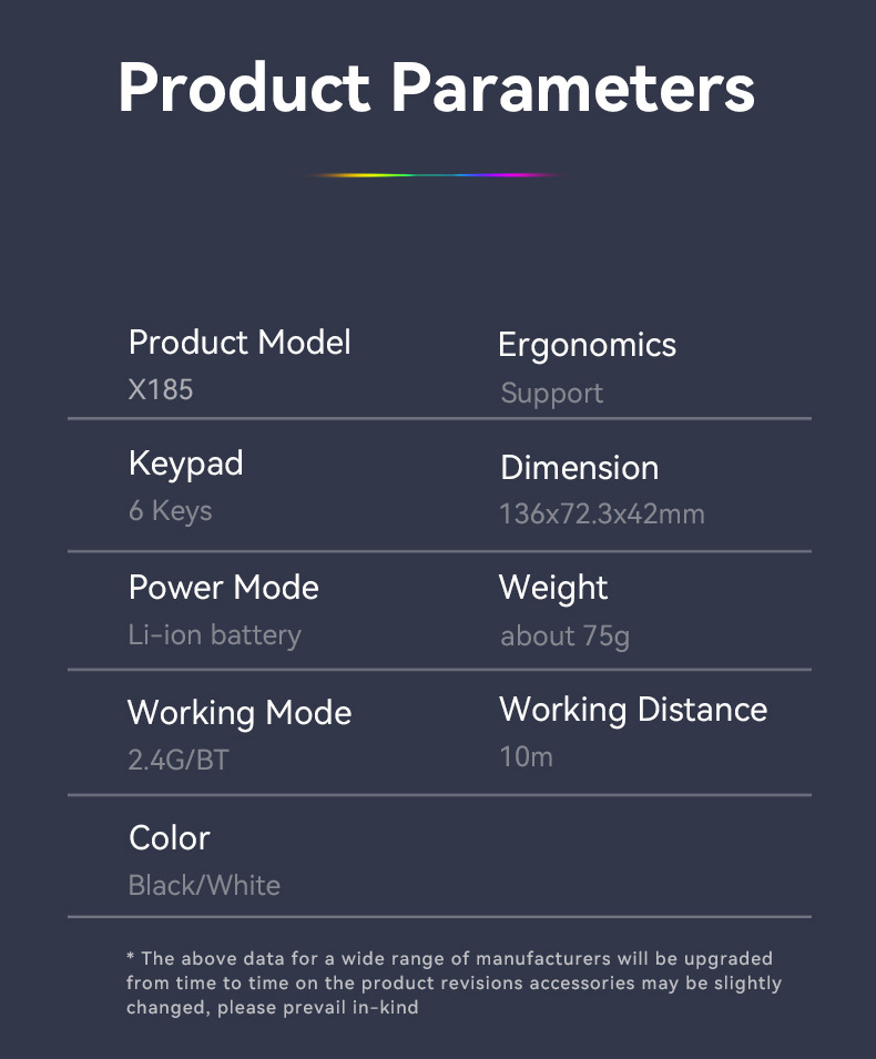 - Working Mode: 2.4G/BT (Bluetooth)