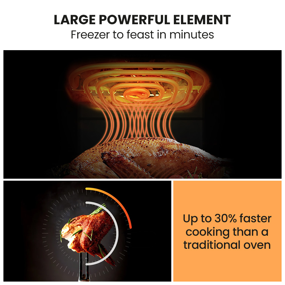 - Achieves a crispy texture with up to 80% less fat for healthier cooking