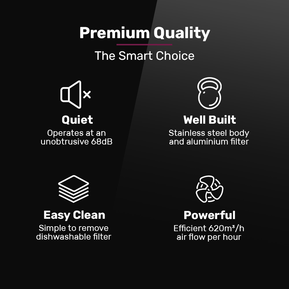 - 150mm air outlet for efficient extraction