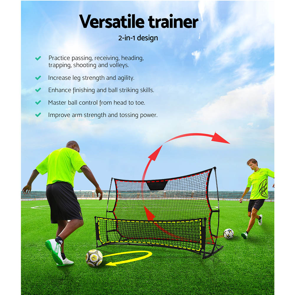 If you love the beautiful game, you will surely love the Everfit Portable Soccer Rebounder Net. Easy to set up, the portable goal comes with a sturdy powder-coated steel frame and a high-density PE net to practice your soccer skills. Passing, receiving, heading, trapping, volleys and shootings are all intermixed with reactive skills on dealing with unpredictable ball rebounds. From goalkeeper to full back to forward, every soccer position can be rigorously trained and tested in real game-like conditions. The frame itself is made with 40% more steel for extra durability. Plus, the four ground stakes ensure that the entire ensemble stays firmly in place with robust play. Not least, you can carry the goal easily to any location for a game with the bonus carry bag.