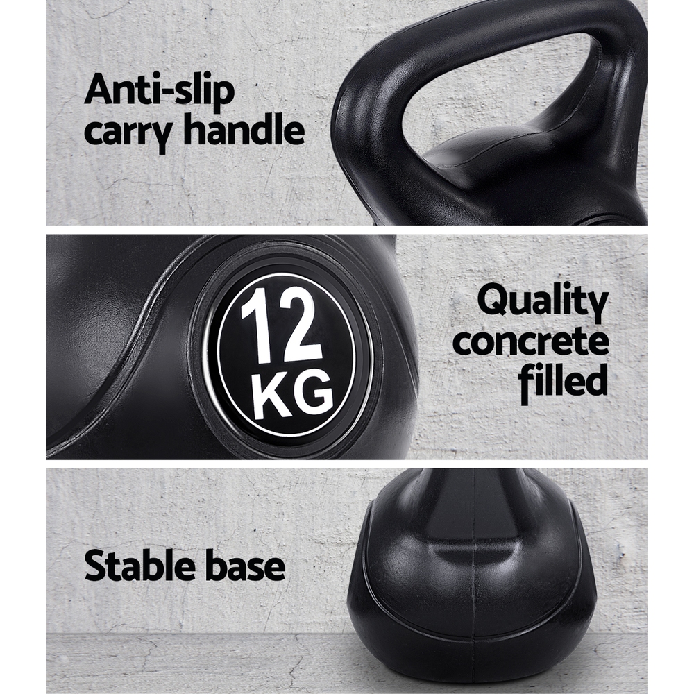 Everfit 12kg Kettlebell Set Weight Lifting Bench Dumbbells Kettle Bell Gym Home