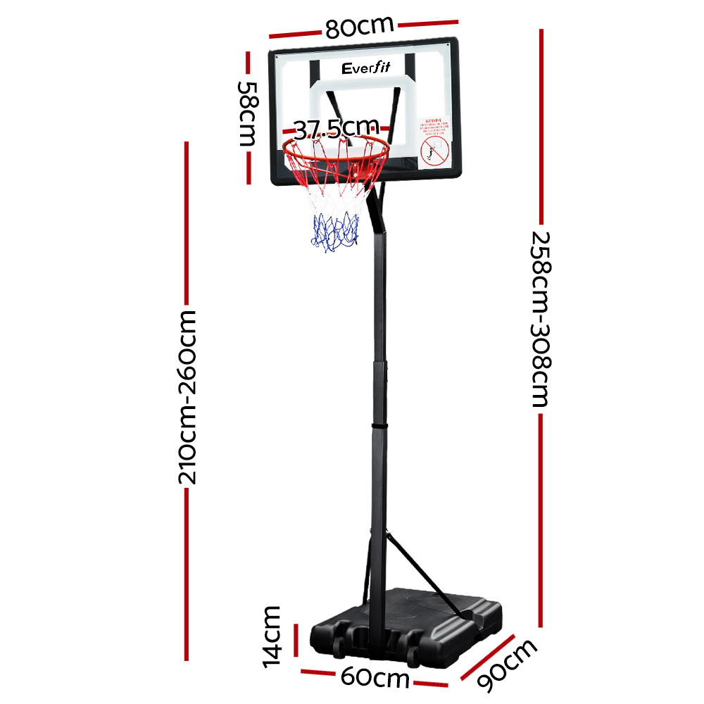 Everfit 2.6M Basketball Hoop Stand System Adjustable Portable Pro Kids Clear