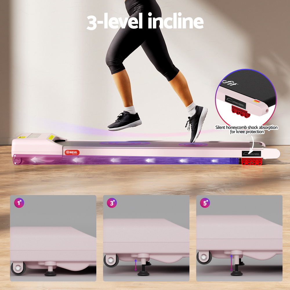 Everfit Treadmill Electric Walking Pad Incline Under Desk Home Gym 380mm Pink