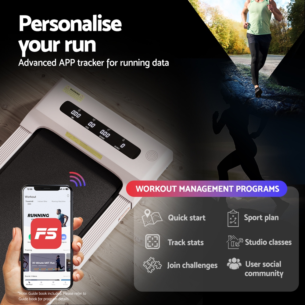 For a truly effective approach to weight loss and toning, our Everfit Walking Pad is your perfect companion. Compact and sturdy, the walking pad allows you to perform essential cardio exercises within the comfort of your home. It is foldable, easy to move, and comes ready to hit the ground running no assembly required. Controlled by either the companion app or remote control, set up speeds of between 1km/h and 10km/h and monitor speed, time, distance and calories. Its powerful and energy-efficient motor produces smooth and seamless operation and the anti-slip belt phone holder makes your session a comfortable and controlled experience. The running belt uses an enhanced shock control system to help reduce the risk of joint injury, making the walking pad suitable for adults and seniors. When all the hard work is done, easily fold and store away the compact walking pad. Other great features include smooth wheels for easy mobility and Bluetooth speakers for entertainment while exercising. For health results that matter, our fitness walking pad is the one to run to.