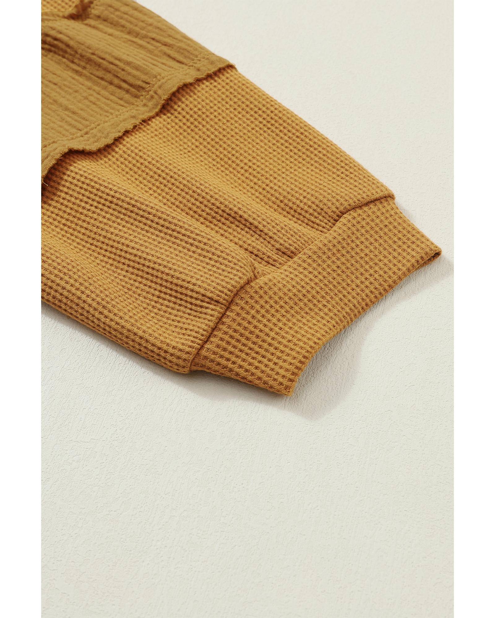 Exposed Seam Patchwork Bubble Sleeve Waffle Knit Top – L