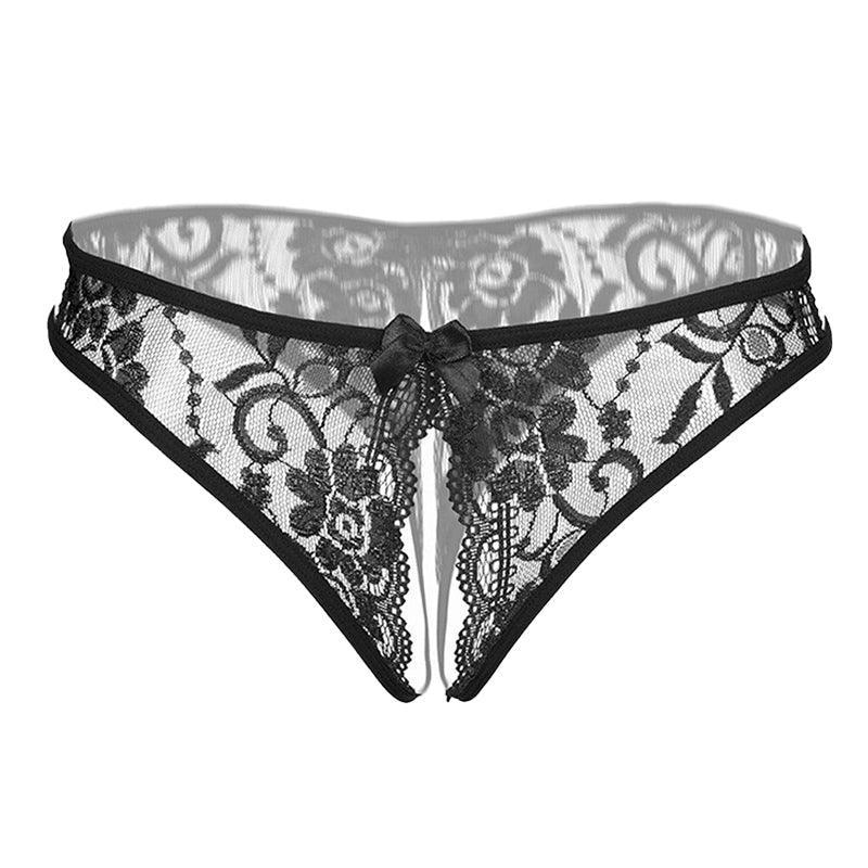 F/M Sexy-Lingerie-Women’S-Crotchless-Thongs-Panties-G-String-Underwear – Black