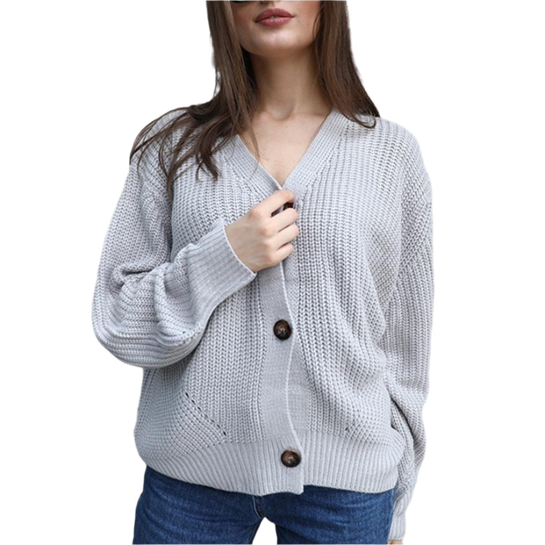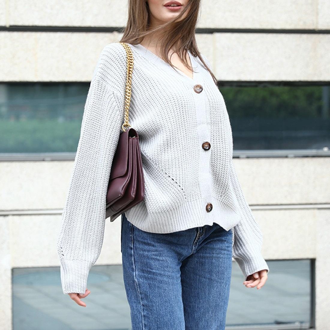 • 1 x Fashion Cardigan Solid Colour Knit Button Sweater Black