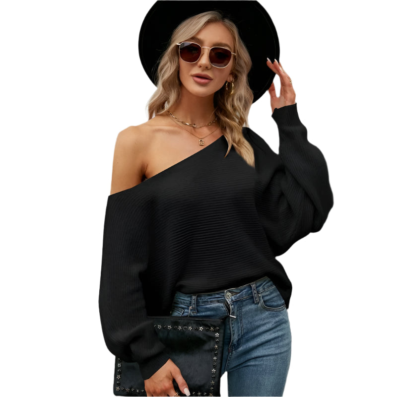 • 1 x Female Sexy Strapless Knit Shirt Loose Bat Sleeve Knitted Tops