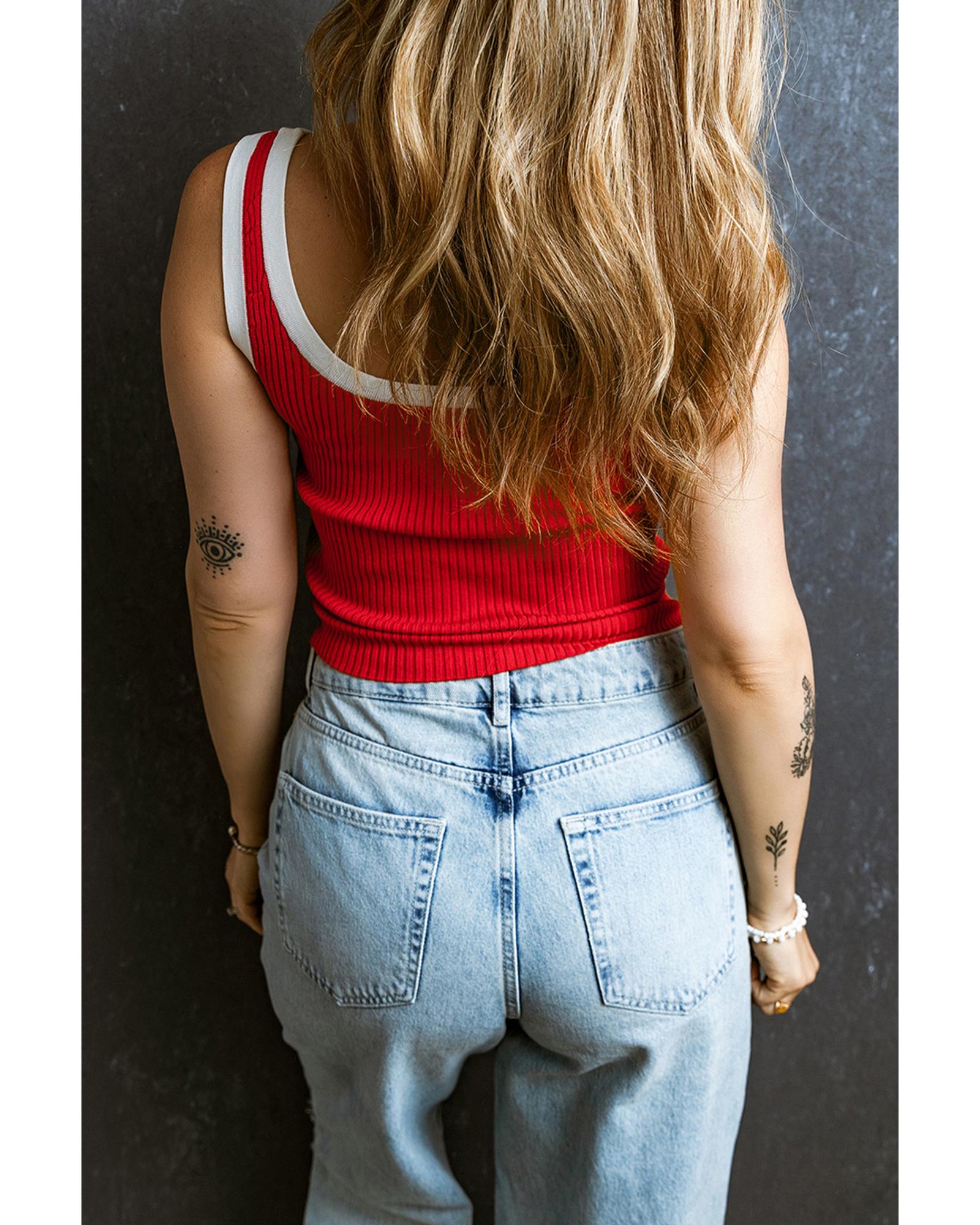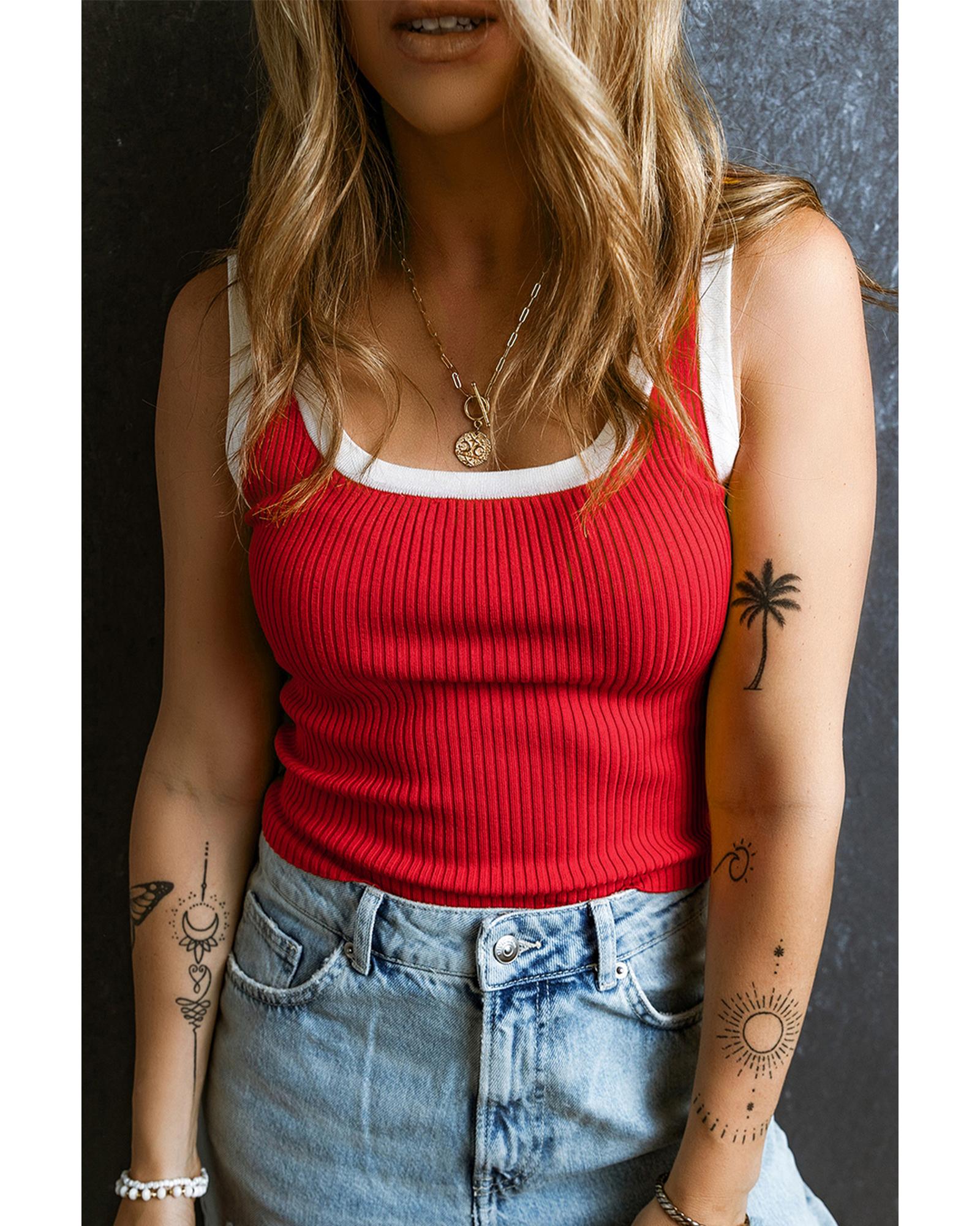 Fiery Red Colorblock Edge Ribbed Knit U Neck Tank Top – XL