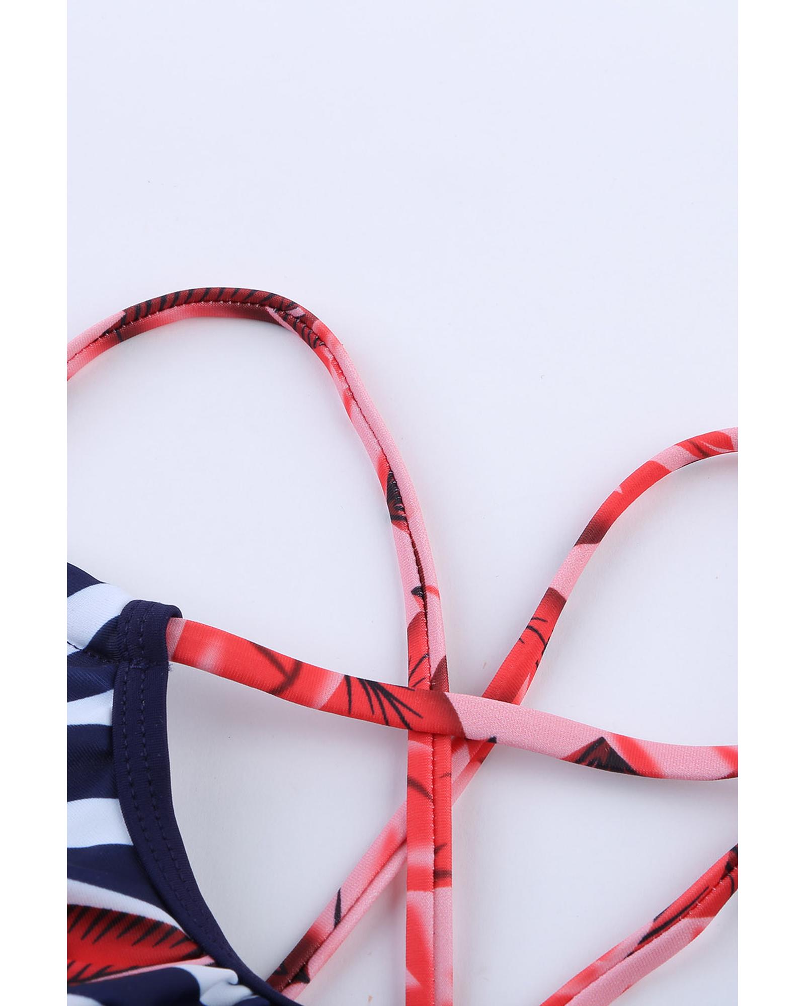 Fiery Red Floral Print Criss Cross Hollow-out Tankini Swimwear – S