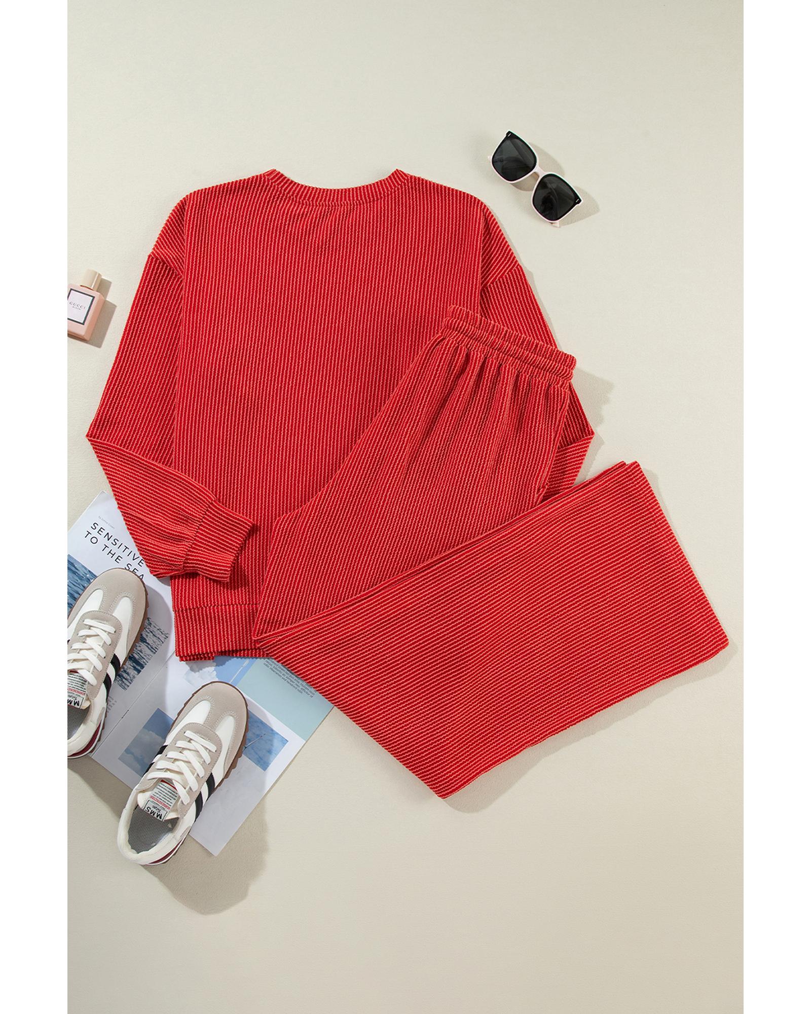 Fiery Red JOLLY Corded Long Sleeve Top and Pockets Pants Set – XL