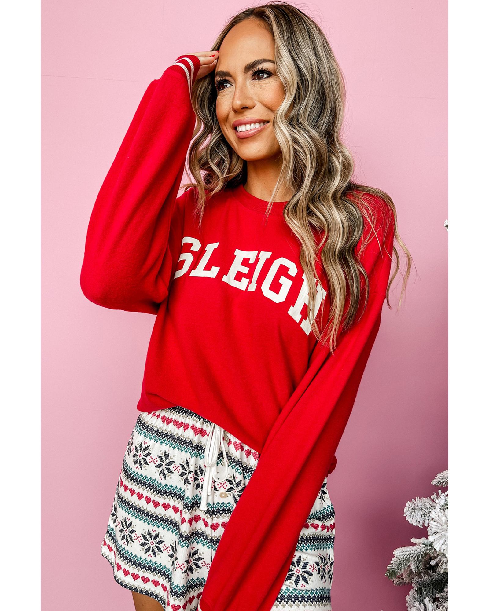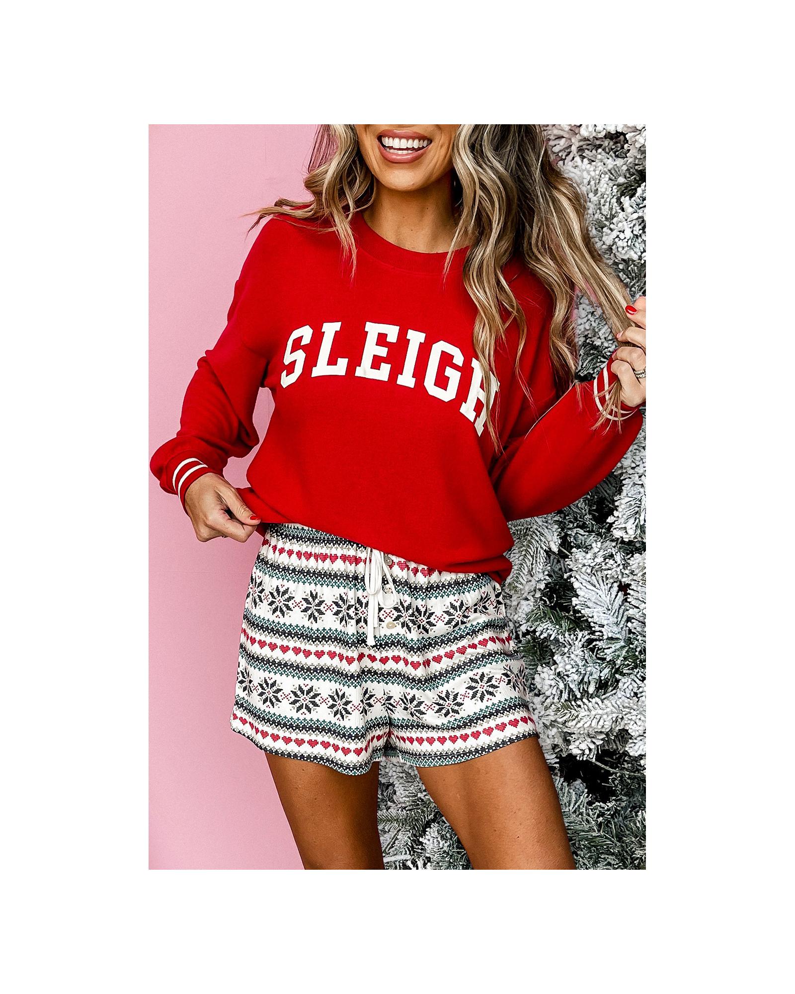 - Fiery Red SLEIGH Snowflake Print Long Sleeve Wide Leg Lounge Set