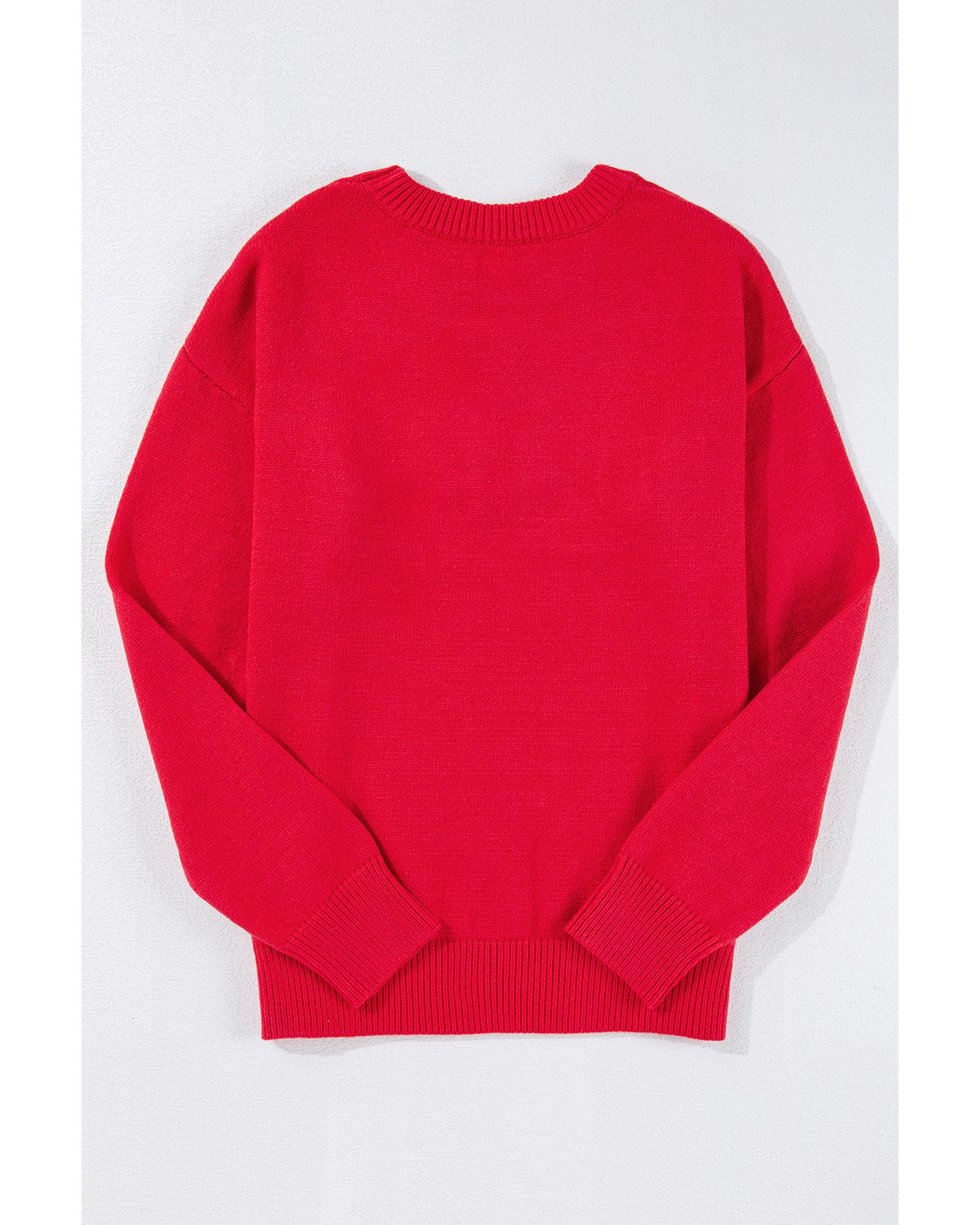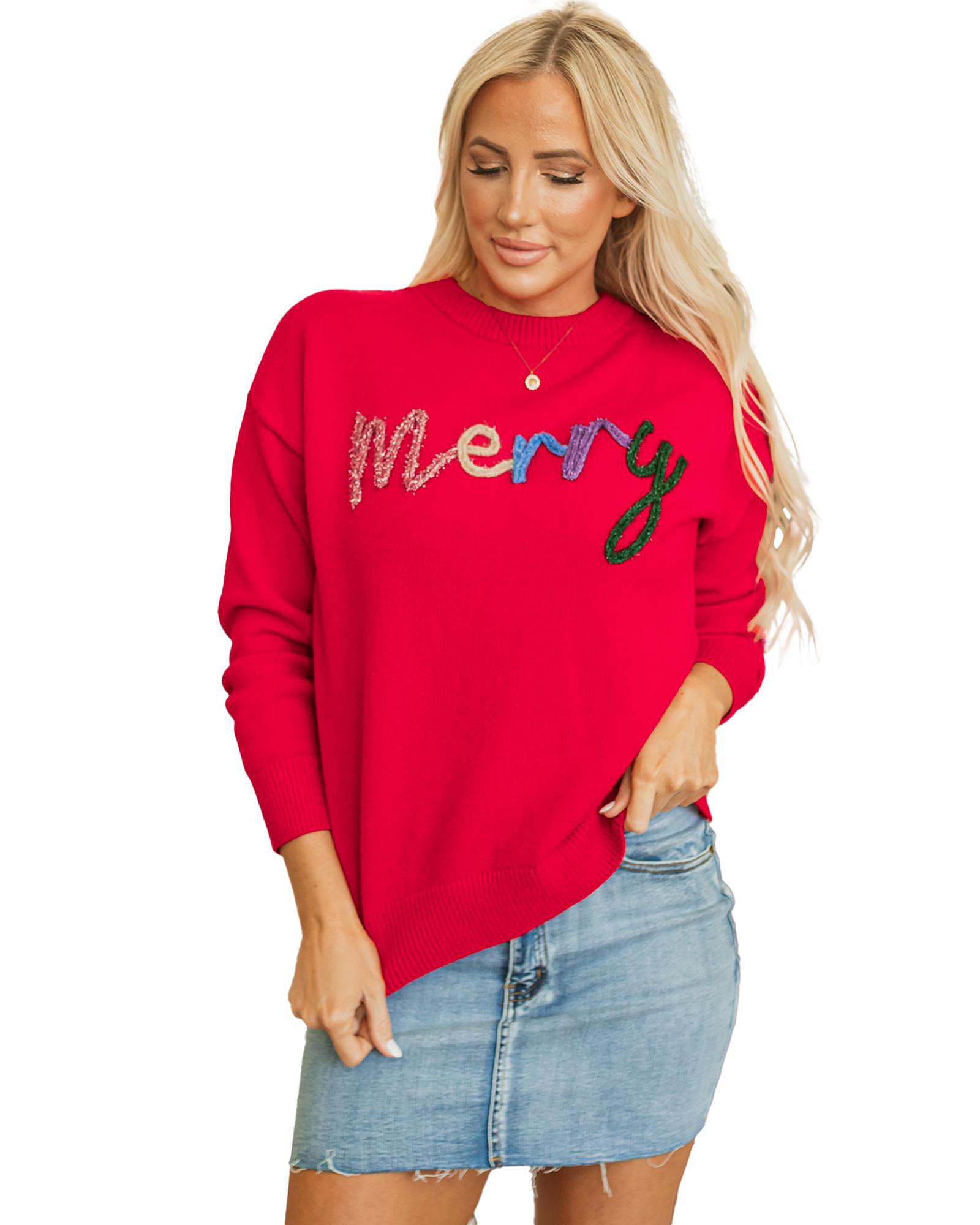 Fiery Red Tinsel Merry Letter Drop Shoulder Baggy Sweater – XL