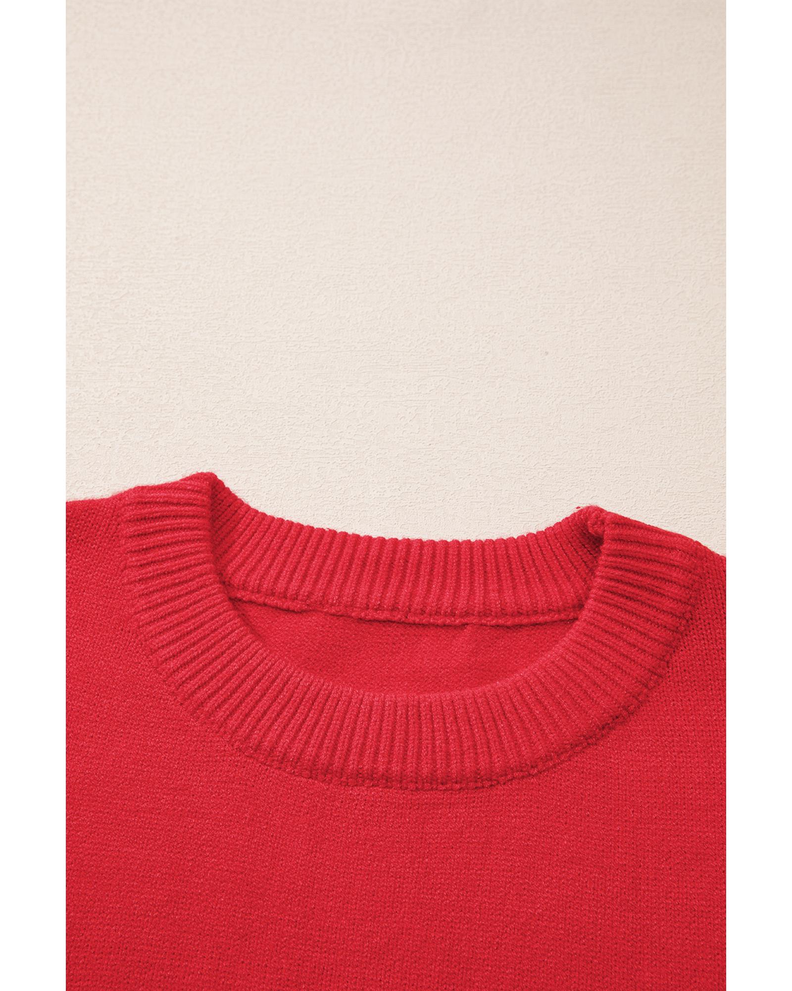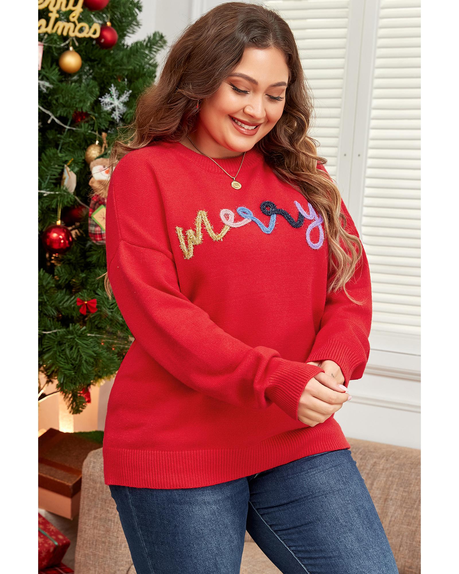 Fiery Red Tinsel merry Pattern Drop Shoulder Plus Size Sweater – 4X