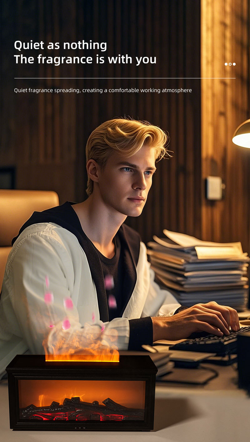 Fireplace Flame Effect Aroma Diffuser & Humidifier with 7-Colour Light, Timer & Remote Control