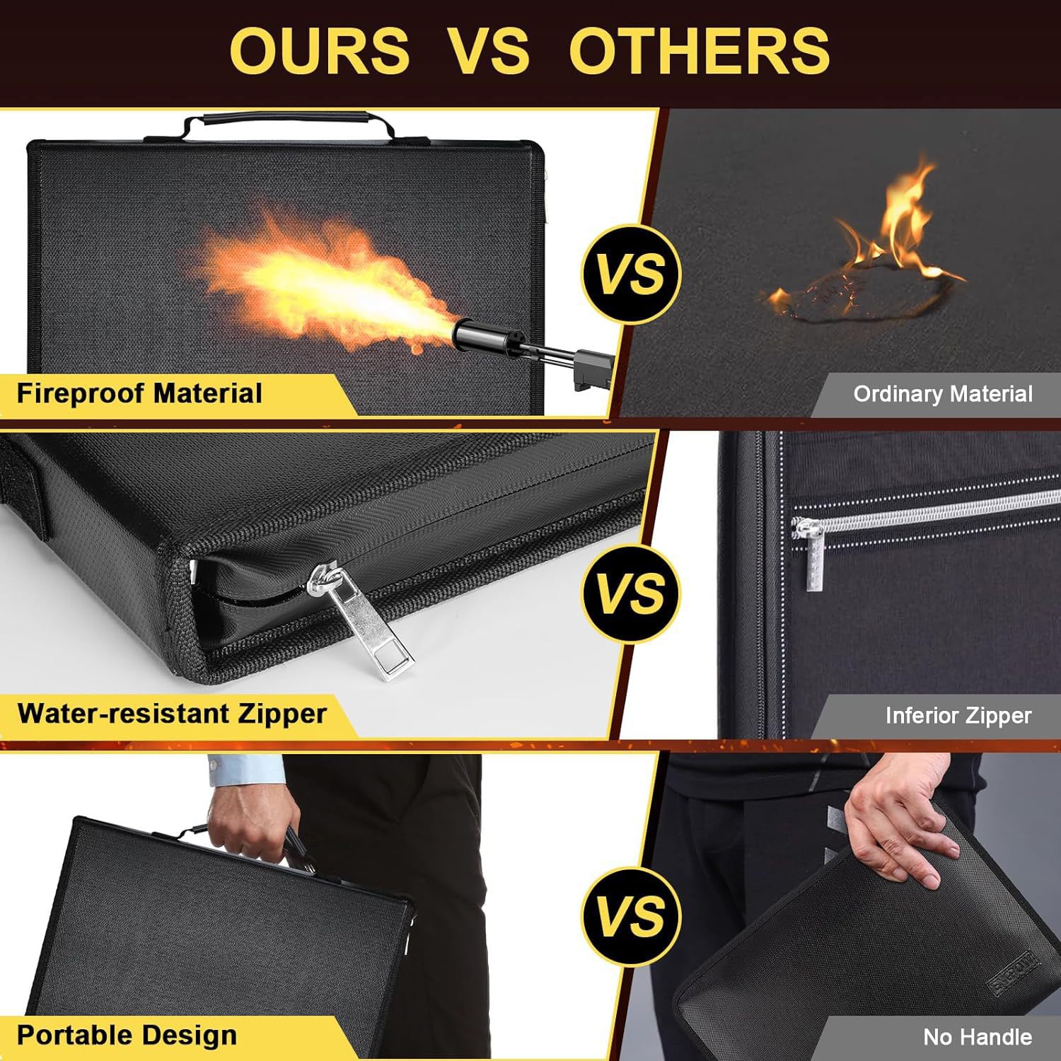 • Fireproof & Waterproof Protection: Made from advanced, SGS-tested fireproof and waterproof silicone-coated material to protect your documents from unforeseen disasters.