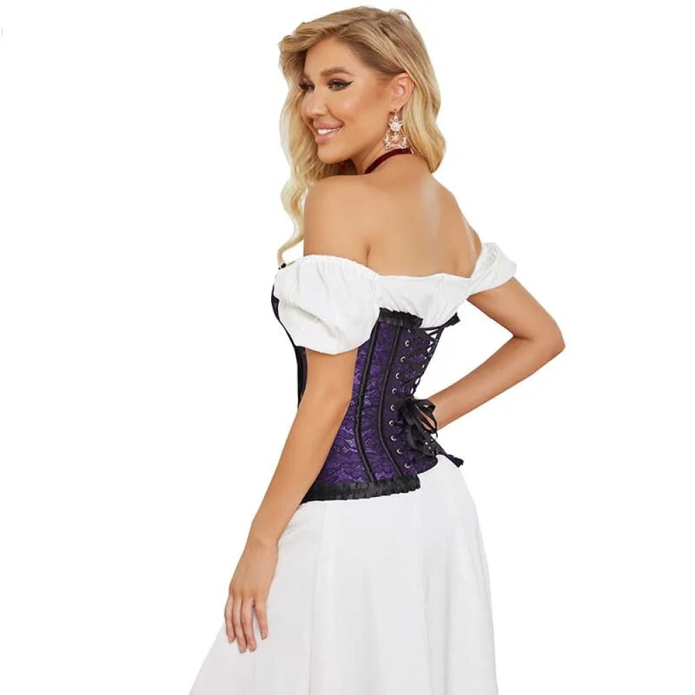 Fishbone Bow Tight Chest Binder Bustier For Gothic Dress Women 10 Red Purple Ruffled Lace Victorian Corset Top – Purple – 6Xl