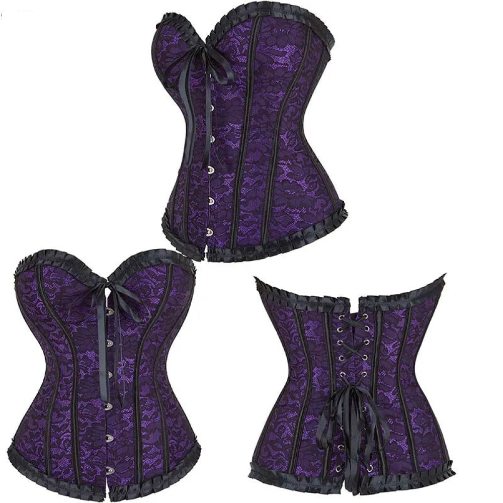• 1 x Fishbone Bow Tight Chest Binder Bustier For Gothic Dress Women 10 Red Purple Ruffled Lace Victorian Corset Top