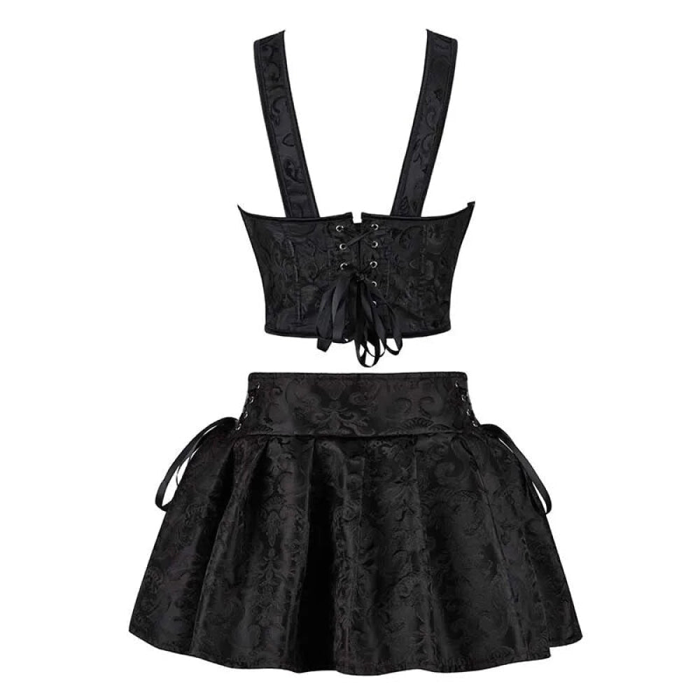 • 1 x Floral Jacquard Lace-Up Boned Corset Dress With Fishbone Support And Gothic Crop Top Skirt Set