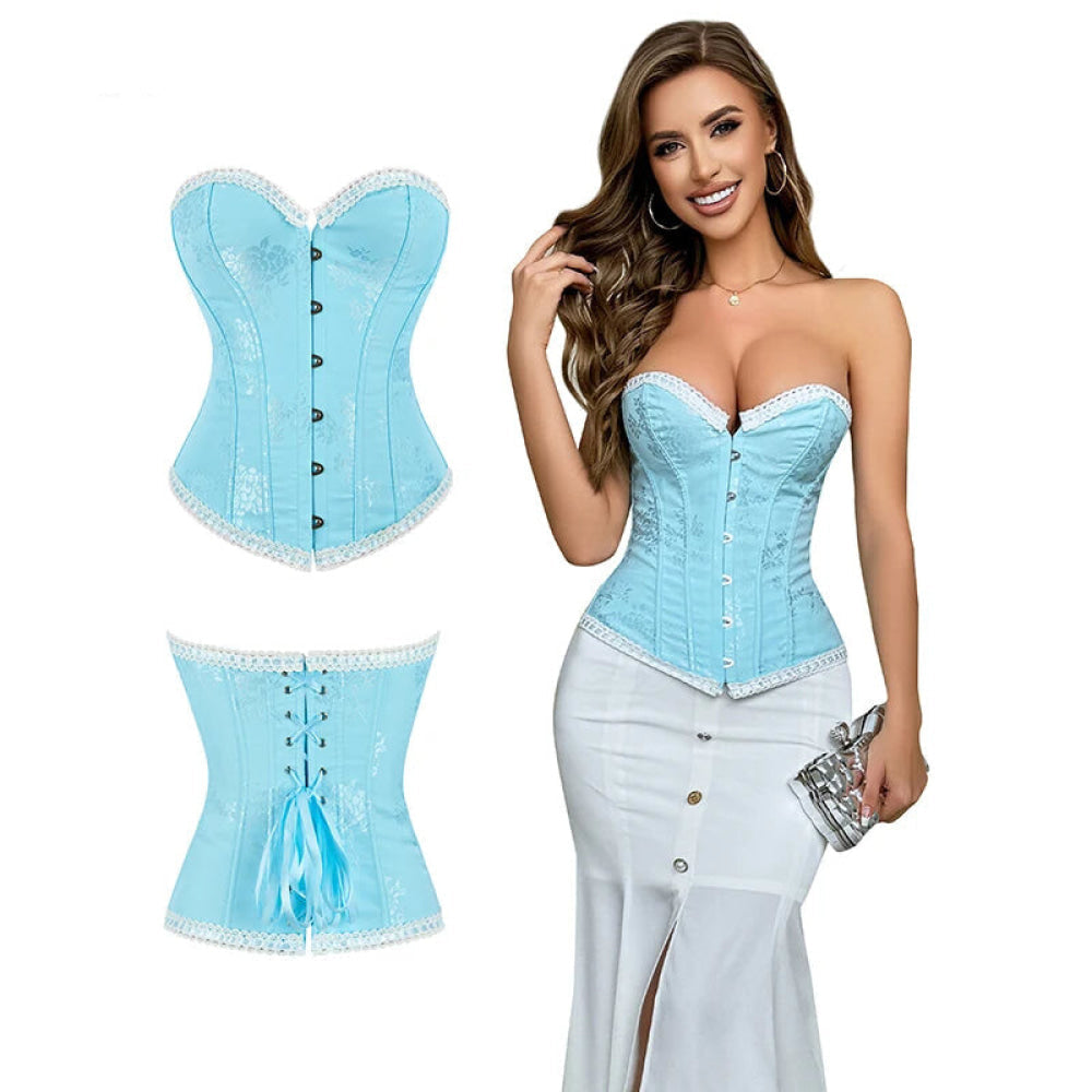 • 1 x Floral Jacquard Ruffled Boned Corset Top Plus Size Xs-Xxxl Sky Blue Wedding Bridal Body Shapewear