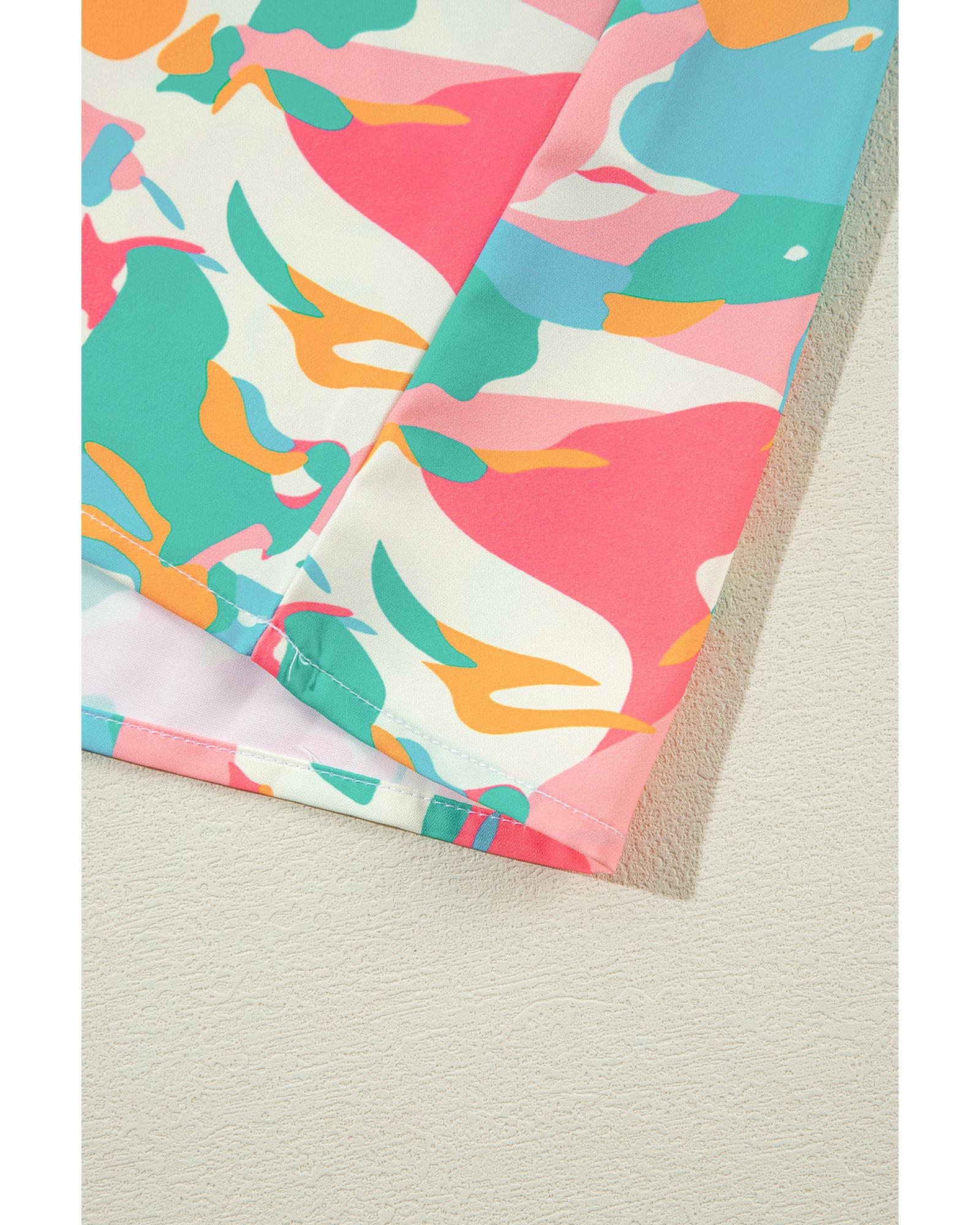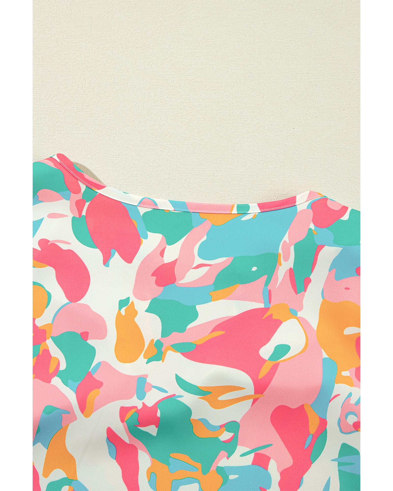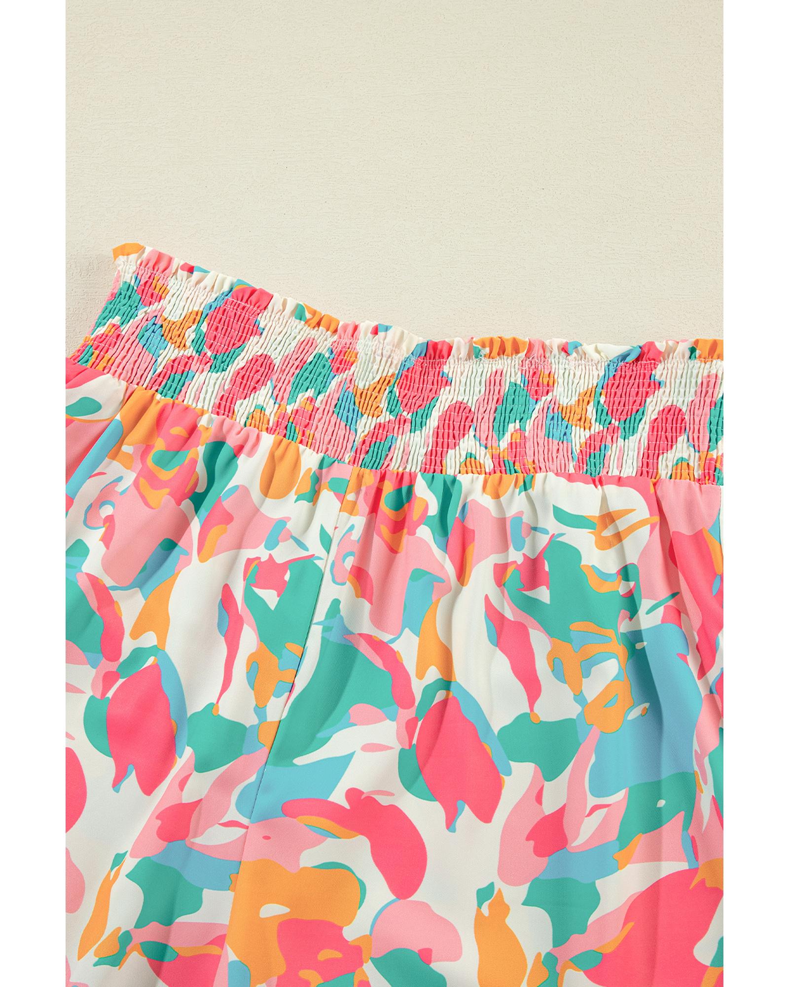 - Floral Ruffled Sleeve Top and Smocked Wide Leg Pants Set