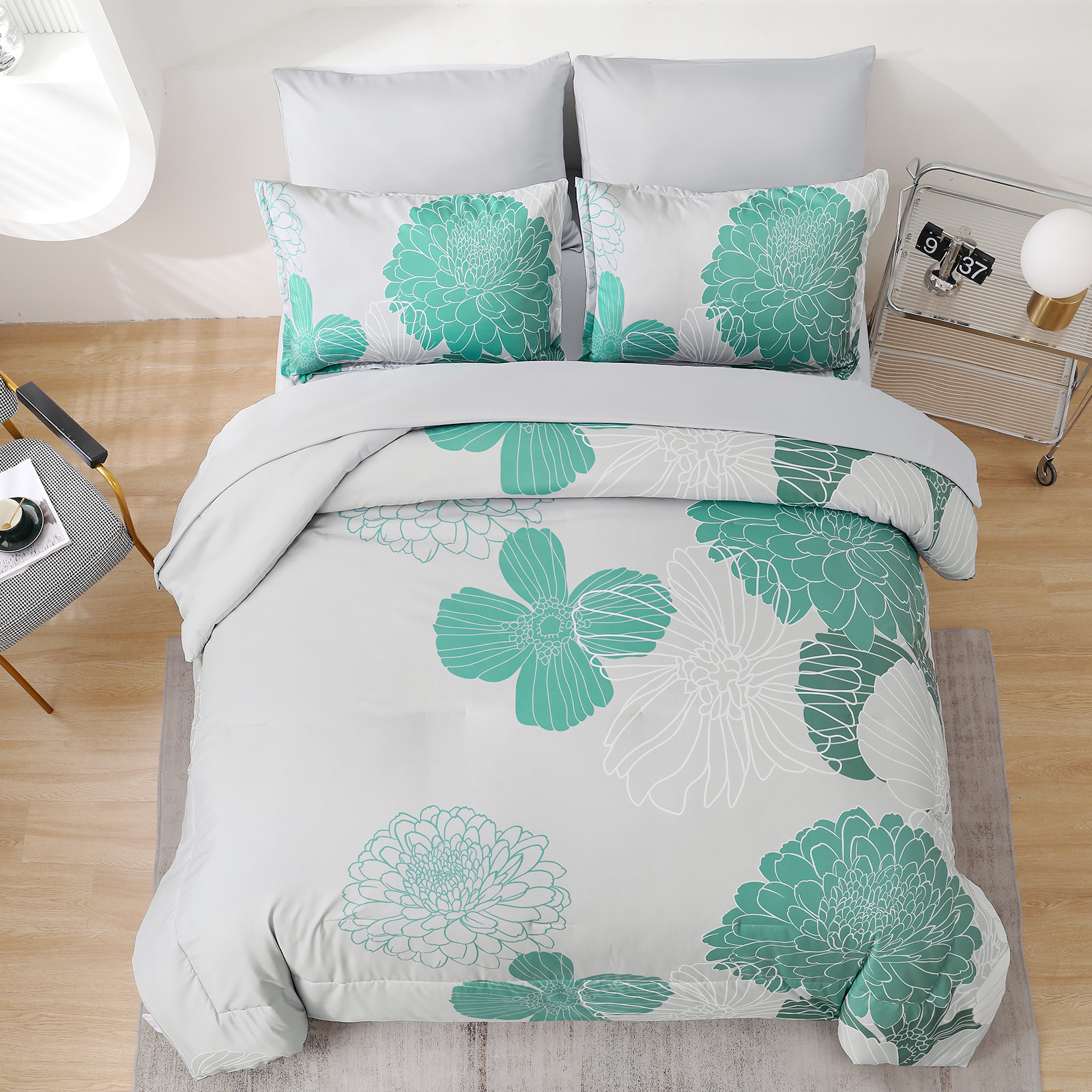Floral Winter Comforter Set, King Size, Ultra-Soft Quilted Bedding with Pillowcases