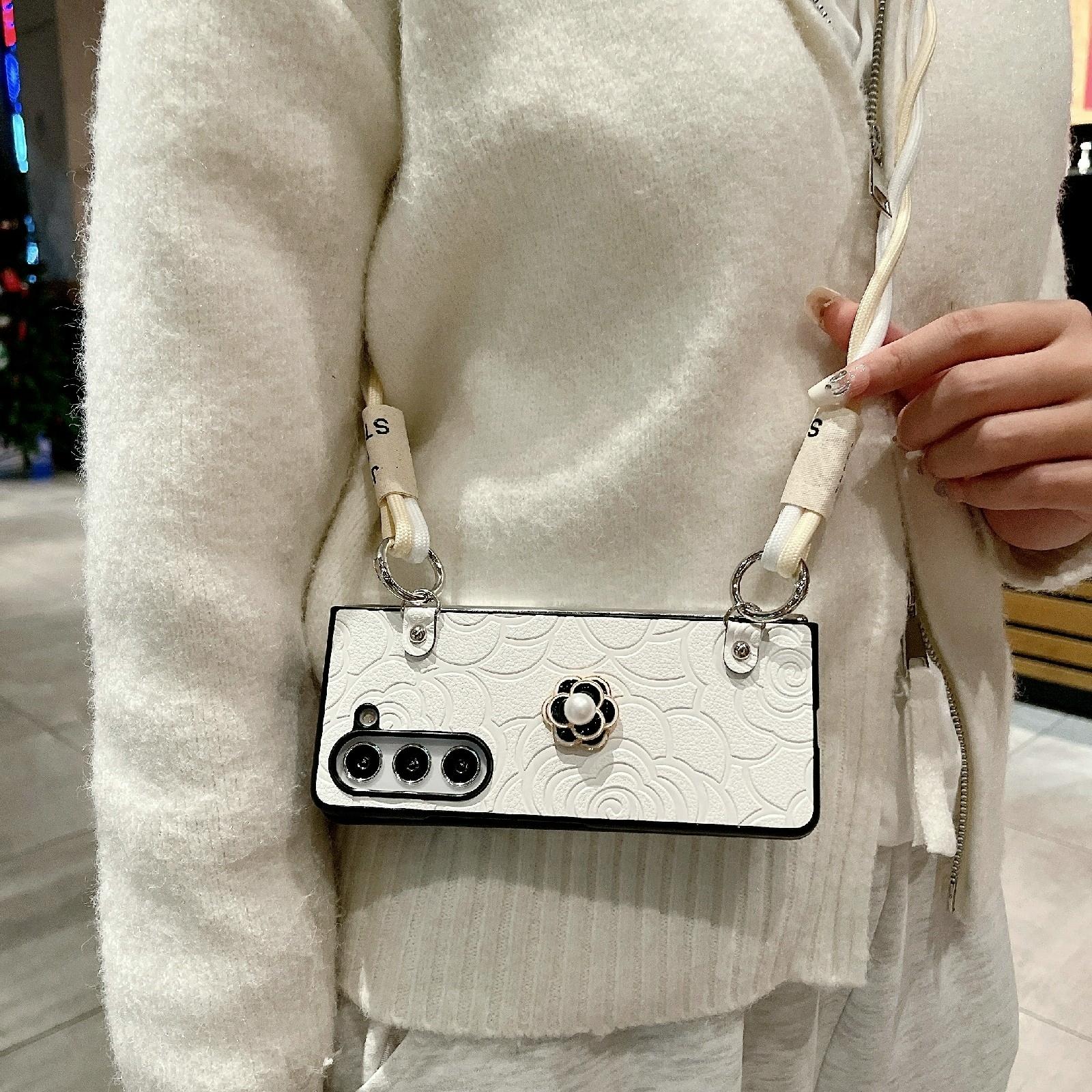 • 1 x For Samsung Galaxy Z Fold4 5G Camellia Pattern Phone Case With Lanyard
