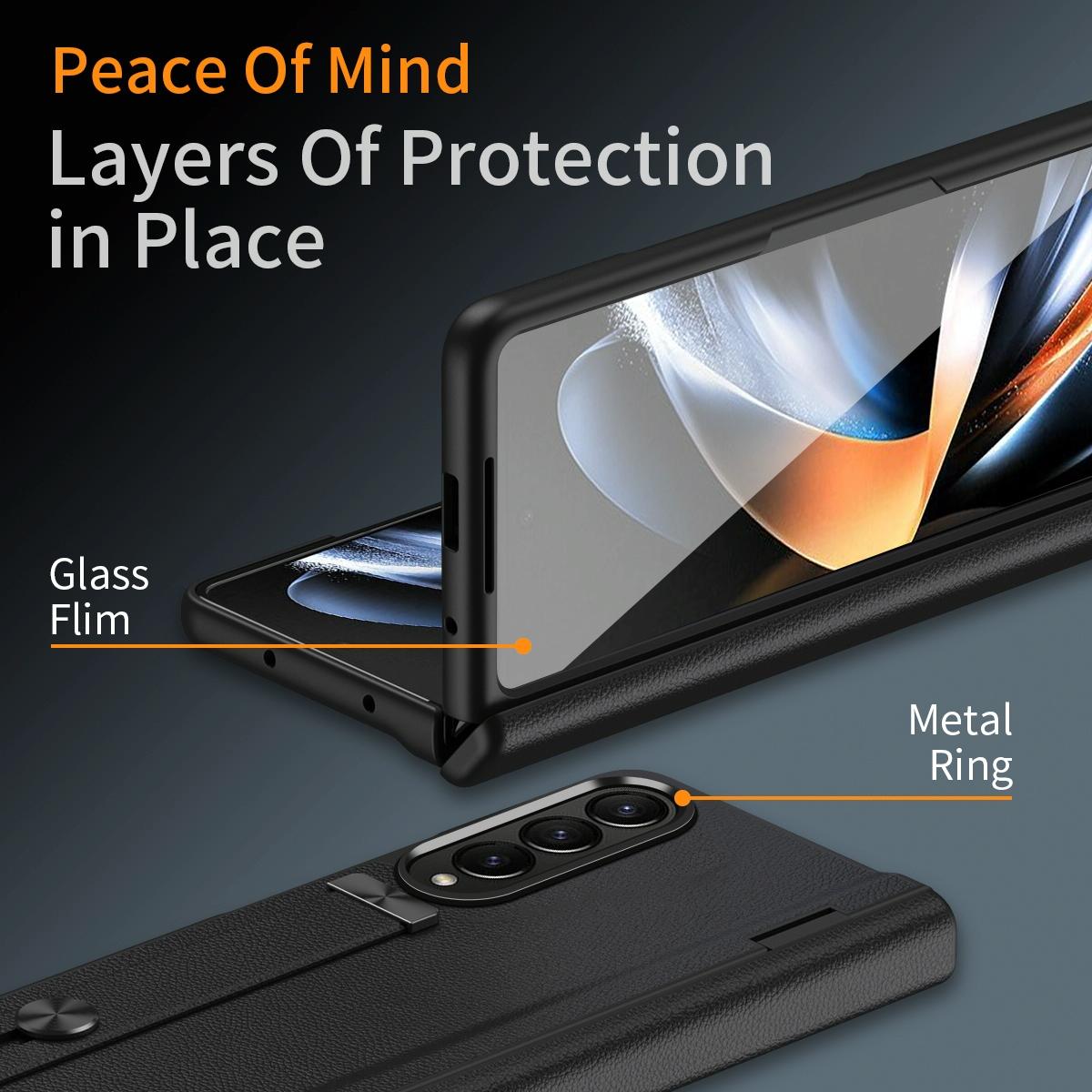For Samsung Galaxy Z Fold4 5G Leather Wristband Phone Case – Black