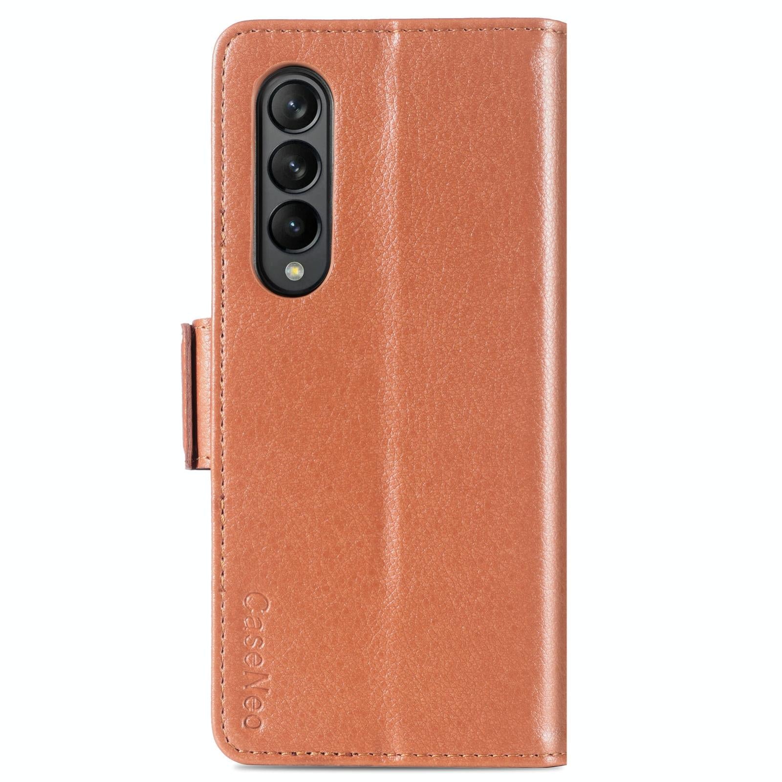 For Samsung Galaxy Z Fold4 5G Litchi Pattern Case With Pen And Card Slots – 4 – Brown