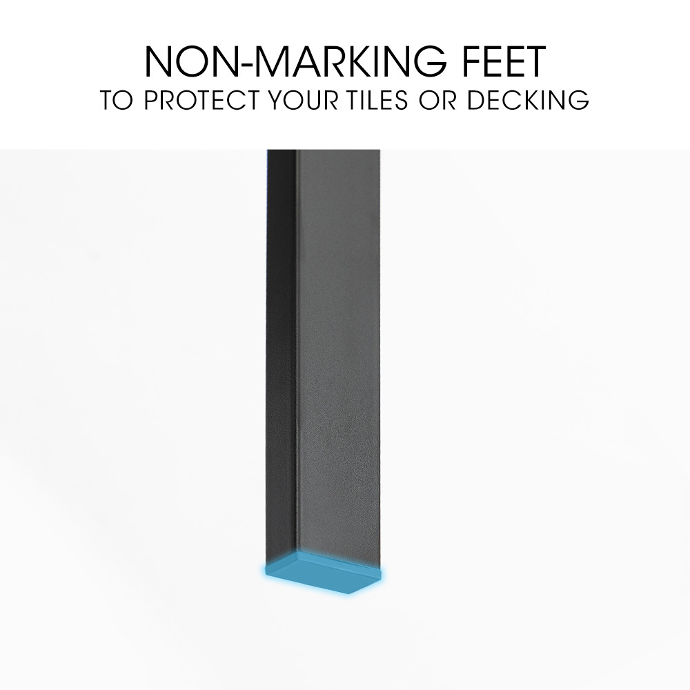 Designed for warm climates, the set features breathable mesh fabric, ensuring well-ventilated comfort, fade resistance, and longevity. The Fortia 6-Piece Outdoor Dining Chair Set has a strong stylish, rust-resistant powder-coated frame and non-marking feet to protect surfaces like tiles or decking.