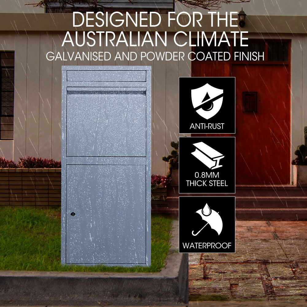 As online shopping continues to surge, the Fortia Freestanding Parcel and Letter Box is the ideal solution for secure and stylish parcel management. This mailbox is crafted from 0.8mm thick steel which has been both galvanised and powder-coated for anti-rust and waterproof properties that are necessary for the Australian climate.