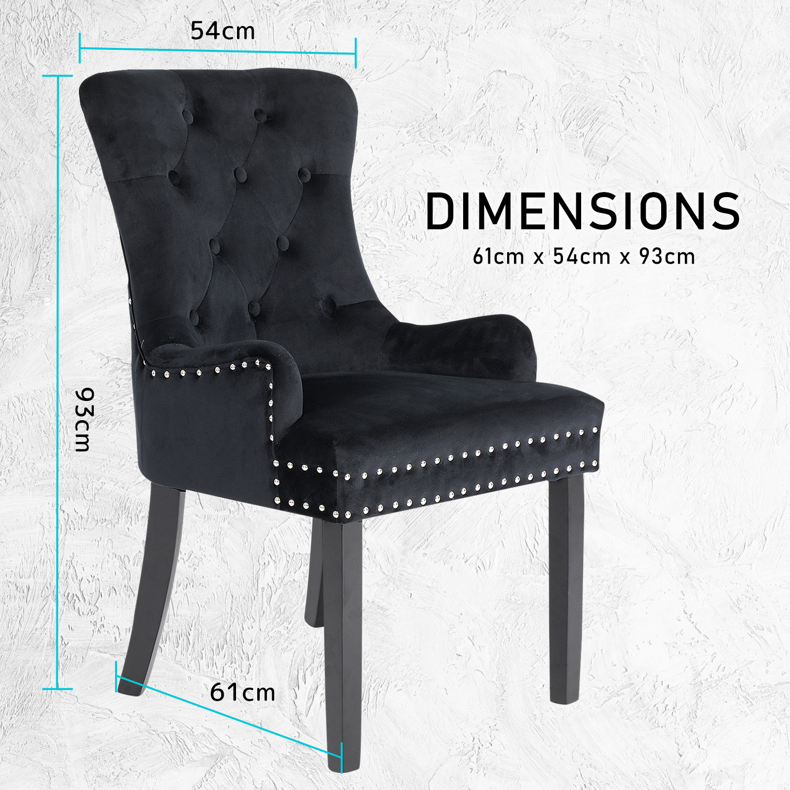La Bella French Provincial Dining Chair Ring Studded Lisse Velvet Rubberwood – Black