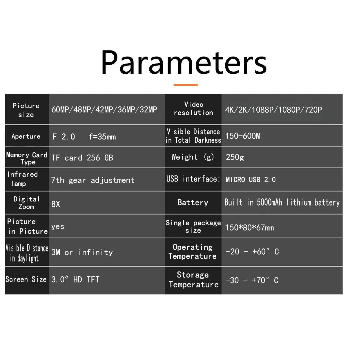 • Video Resolution Options: 4K/2K/1080P/720P