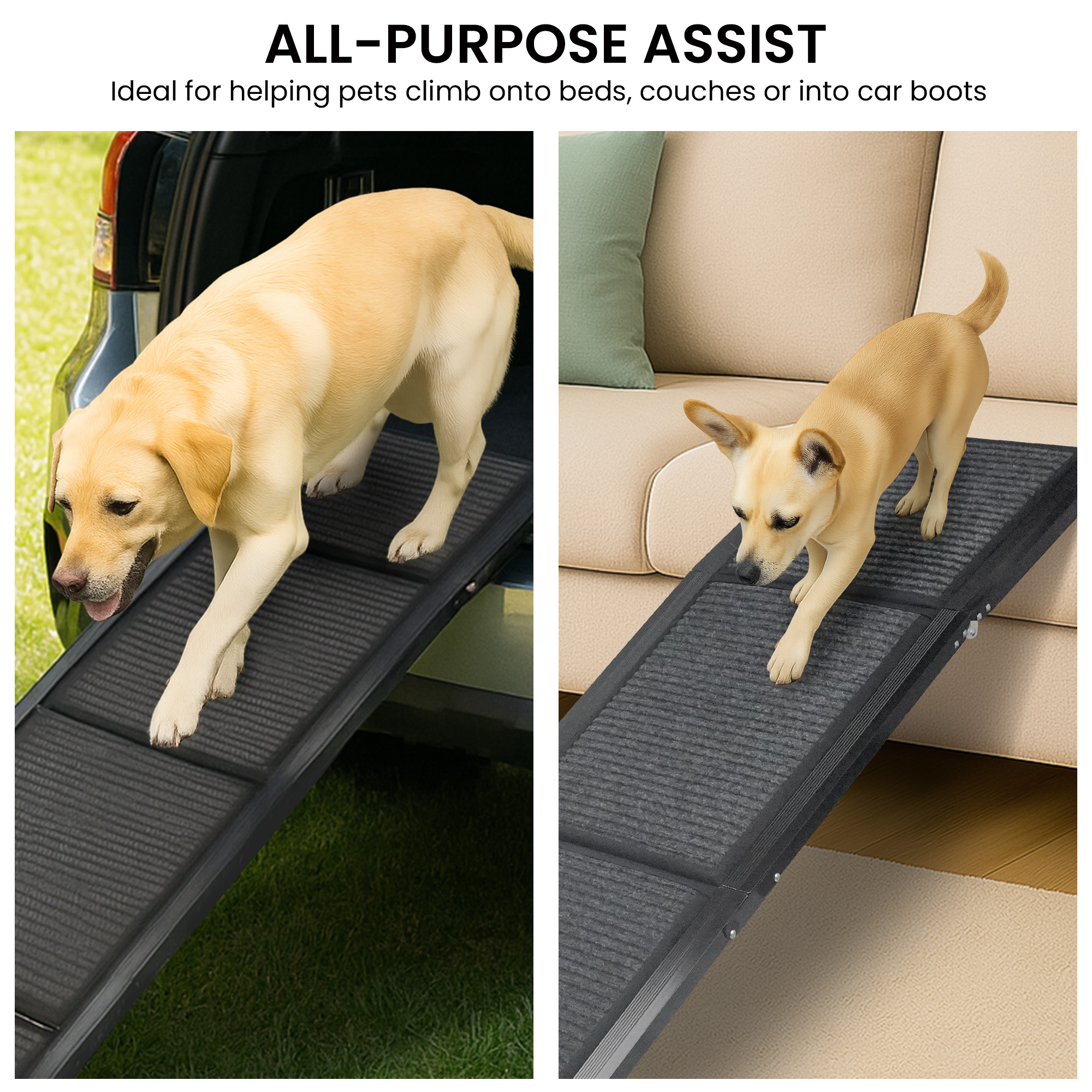 Whether it is road trips or vet visits, make getting up easier for your four-legged mate with this smart, foldable dog ramp by Furtastic. Designed with a tough aluminium frame and textured felt surface for secure footing, it spans 180cm for a gentle incline your pet can trust.
