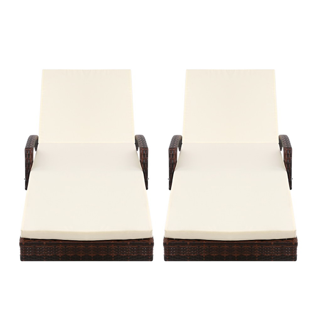 Gardeon 2PC Sun Lounge Wicker Lounger Outdoor Furniture Beach Chair Patio Adjustable Cushion Brown