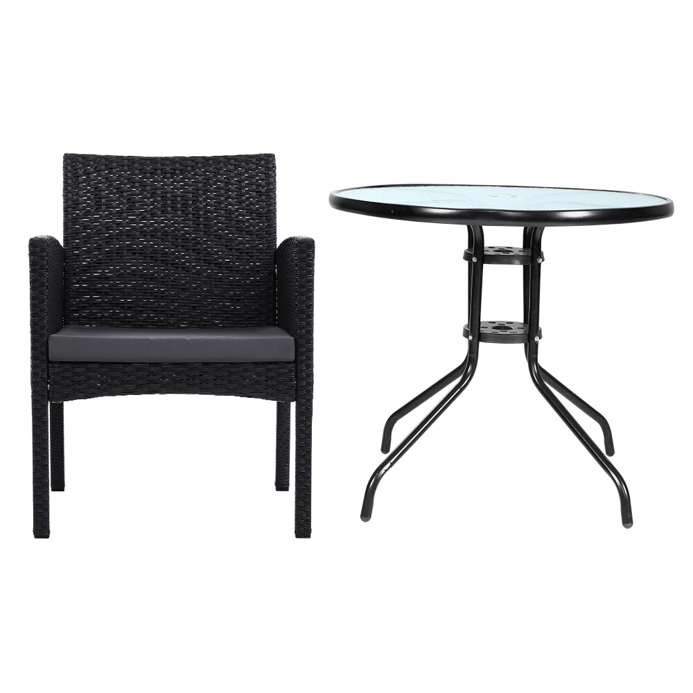 Gardeon 3PC Bistro Set Outdoor Furniture Rattan Table Chairs Cushion Patio Garden Hugo