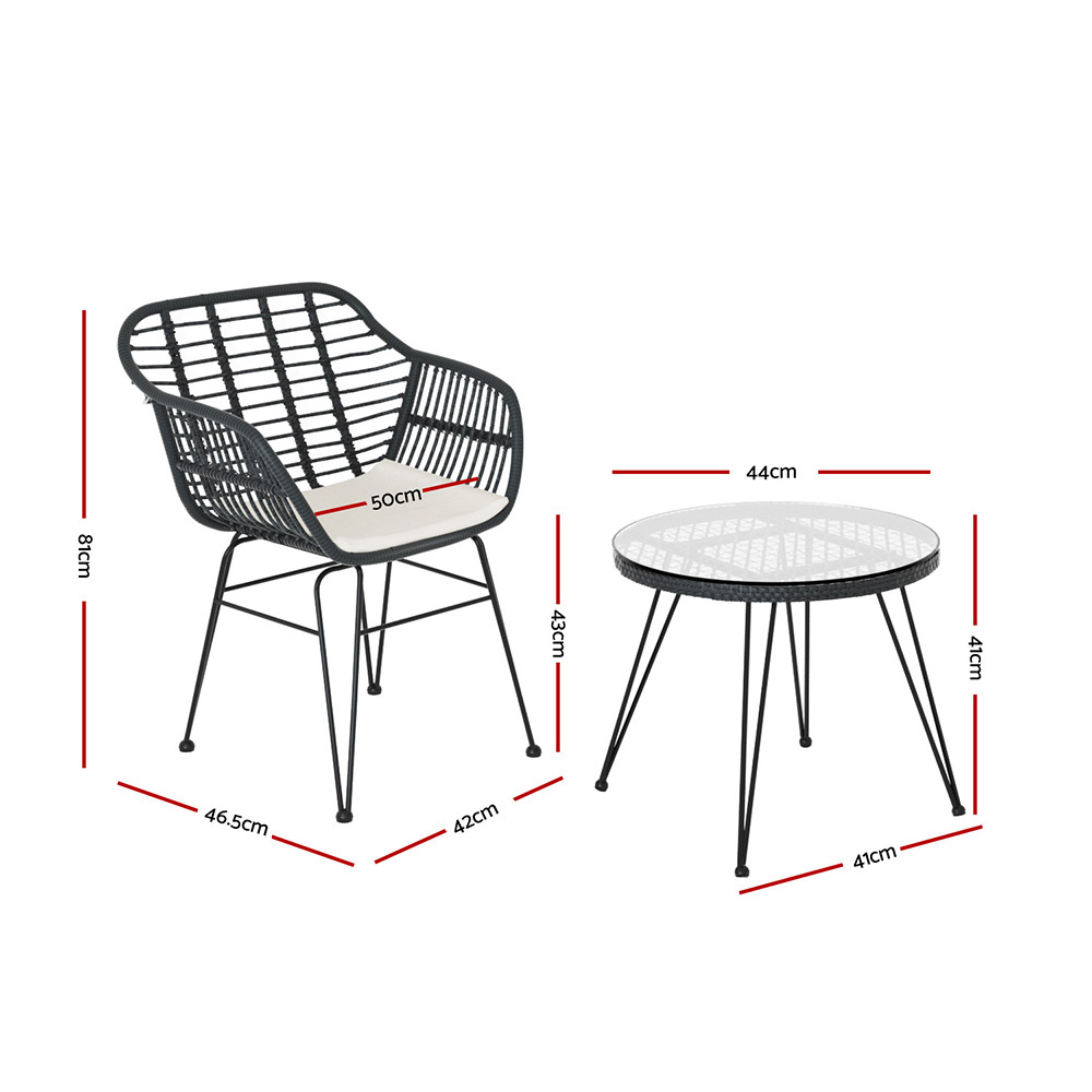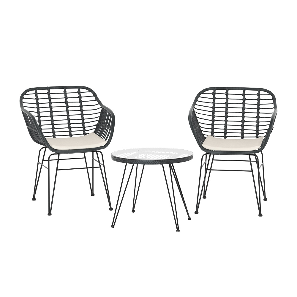 Gardeon 3PC Outdoor Furniture Bistro Set Lounge Setting Table Chairs Cushion Patio Grey
