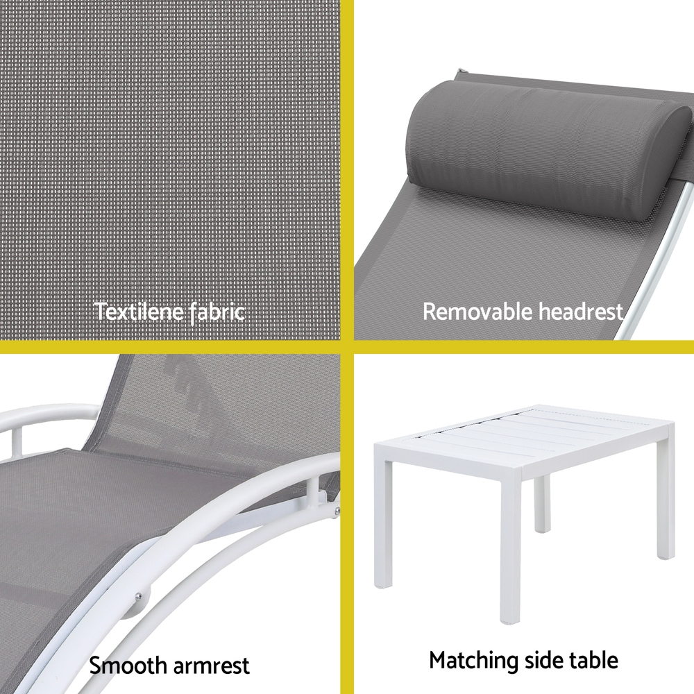 Gardeon 3PC Sun Lounge Outdoor Lounger Table Chairs Steel Patio Furniture Garden