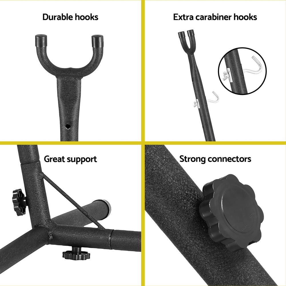 Picture yourself on a lazy Sunday, book in hand, swaying gently amidst the whispering trees. Our Gardeon Hammock Chair, comes with a sturdy metal frame, is your perfect retreat. Its soft-touch polyester-cotton blend ensures cosy comfort as you read, nap, or daydream. Combining luxury with versatility, it’s the ideal spot for your moments of relaxation.