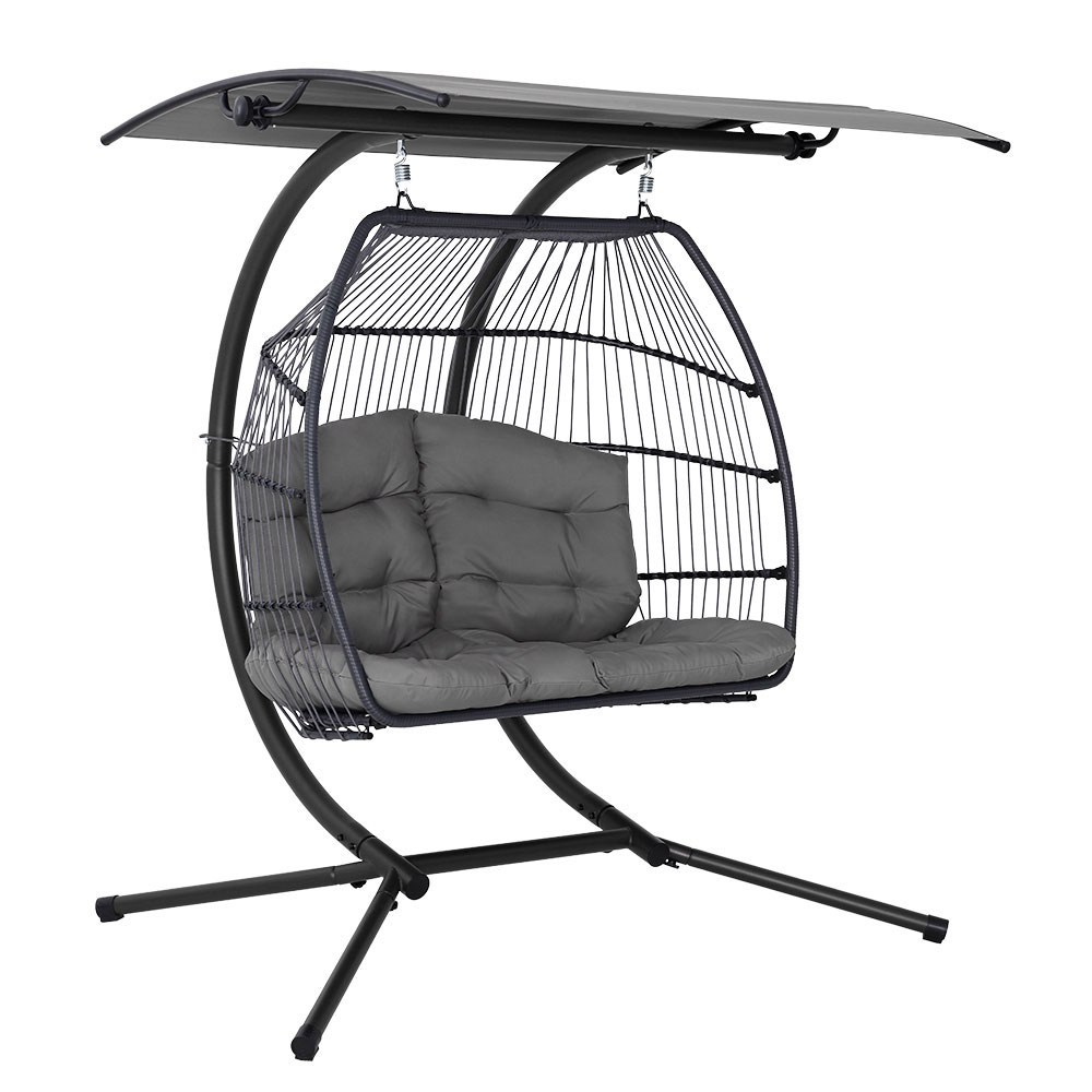 Gardeon Outdoor Egg Swing Chair Wicker Furniture Pod Stand Canopy 2 Seater Grey