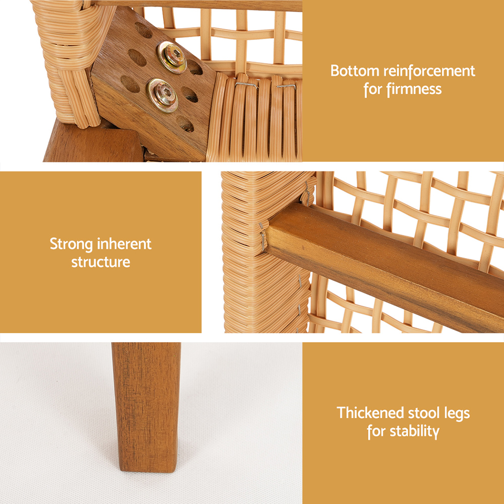 Enjoy a peaceful afternoon in the backyard with a Gardeon 2-seater Garden Bench. With a smooth rubber wood surface and PE wicker seat, this timeless garden bench is the perfect addition to your outdoor dining area. The chair is strong, sturdy and weather resistant, so you know it will be there come rain or shine. The PE rattan seat keeps the bench well-ventilated and is simple to clean. With a reinforced bottom and thickened base legs, the bench has a weight capacity of 220kg. Use outdoors for a classic exterior look or use inside for a rustic touch to your décor. What better way to spend spring than with company outdoors on your Gardeon 2-seater Garden Bench.