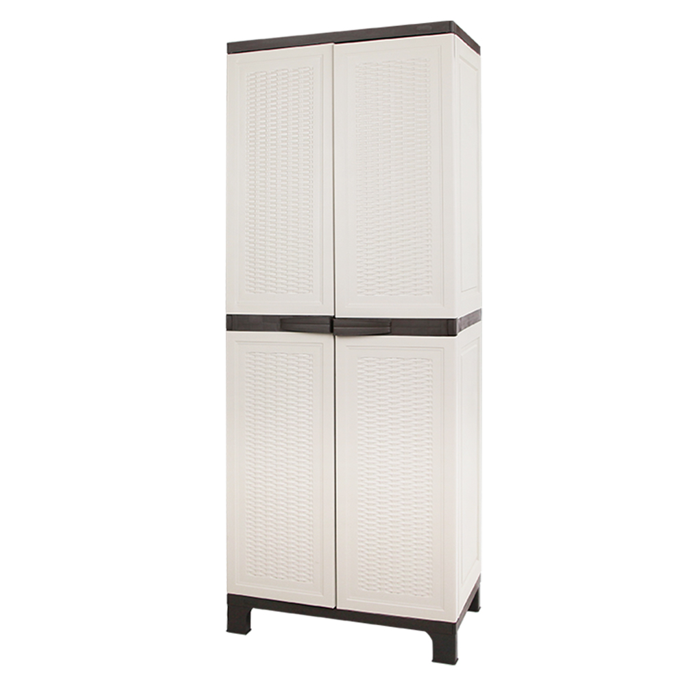 Outside, the weather-resistant Storage Cabinet features premium plastic construction with corrugated panels for both reinforced support and stylish looks. Security and safety is also enhanced with lockable doors that can be secured with a range of locks. Not least, the entire unit stands on large stilted feet to keep it away from floods, spills or wet floors.