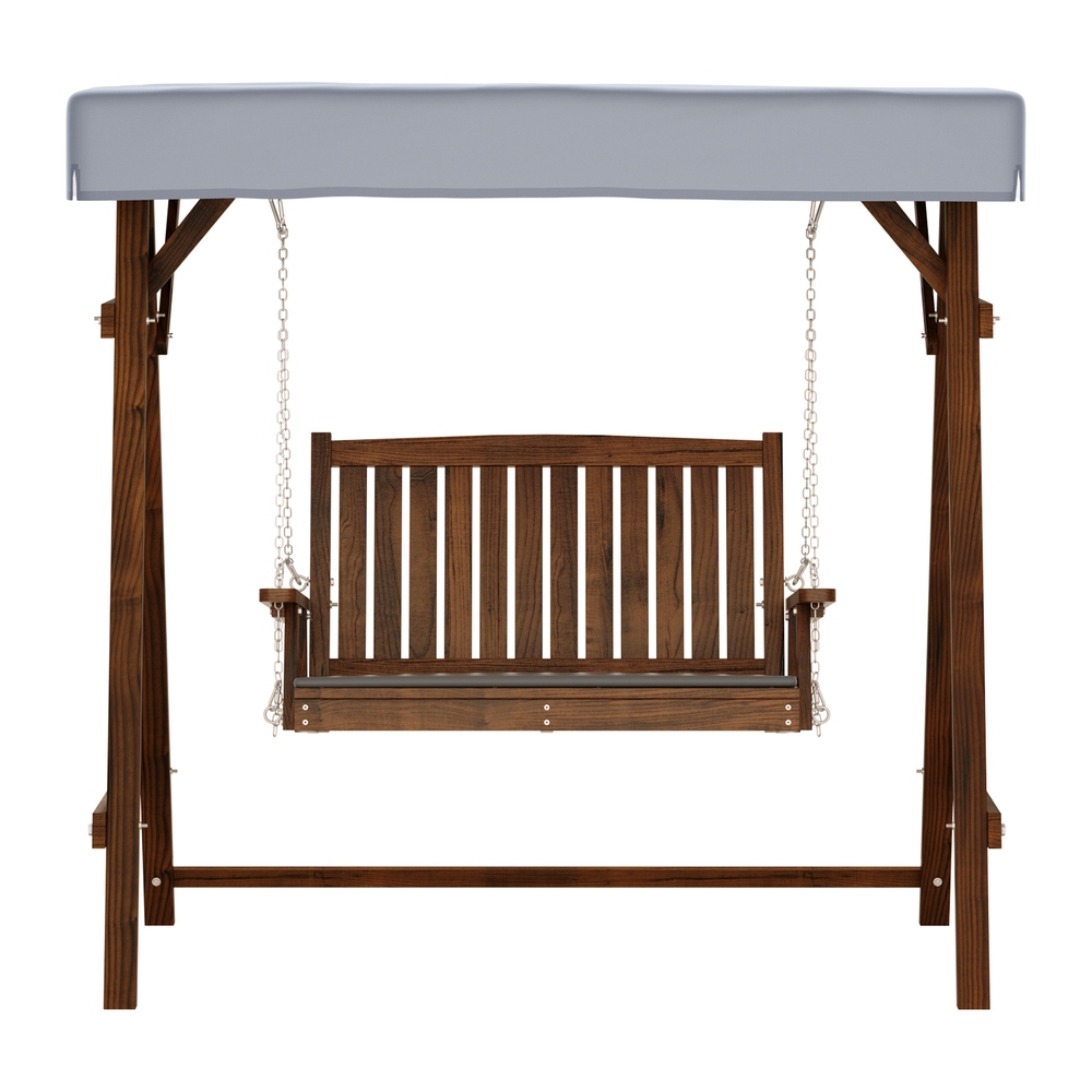 Gardeon Outdoor Wooden Swing Chair Garden Bench Canopy Cushion 2 Seater Charcoal