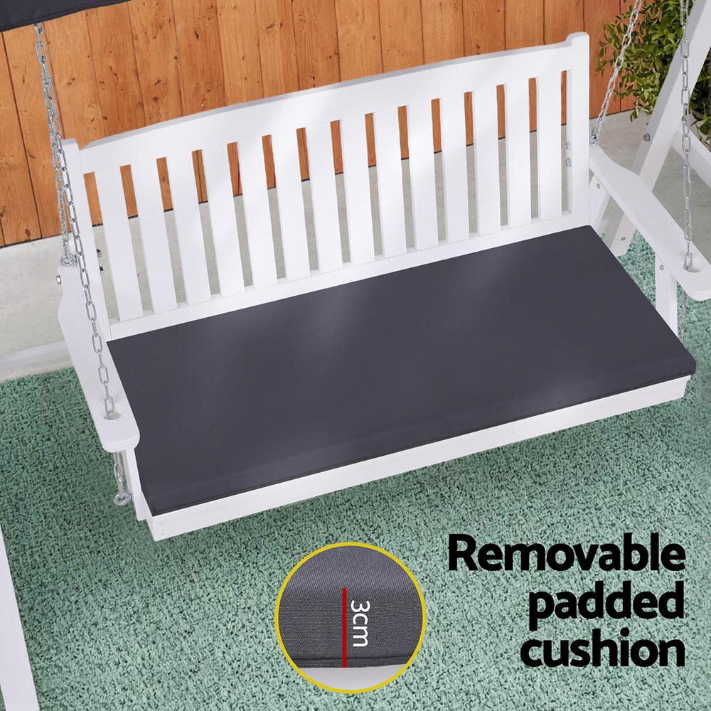 Gardeon Outdoor Wooden Swing Chair Garden Bench Canopy Cushion 3 Seater White