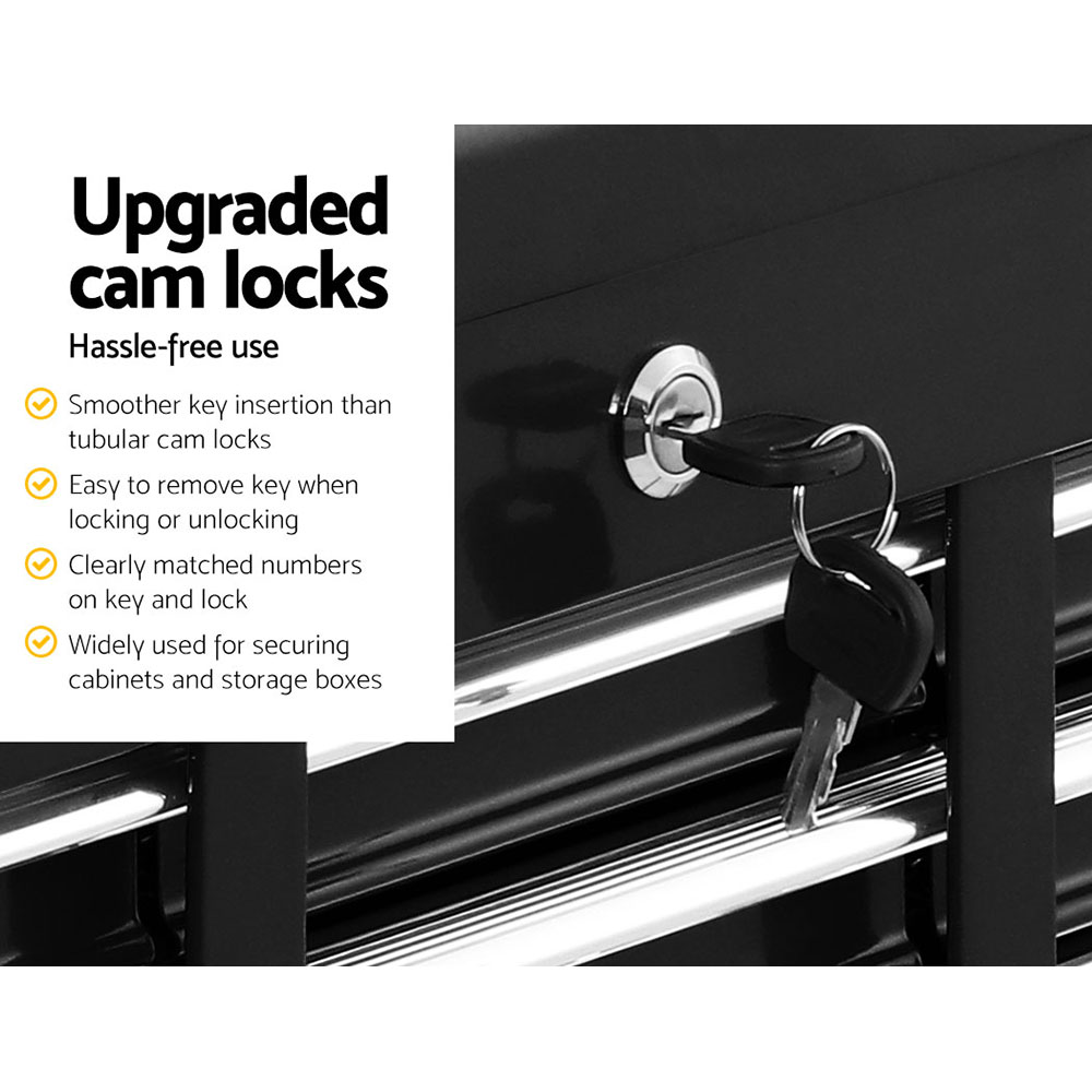 This robust, multi-drawer Giantz Tool Chest is an essential for any workshop. Crafted from durable steel, it features smooth ball-bearing slides for easy access and a secure lock system for safety. Its spacious design includes varying drawer sizes to accommodate tools of all shapes, complete with non-slip liners. Sleek and functional, it’s perfect for organizing and protecting your valuable tools.