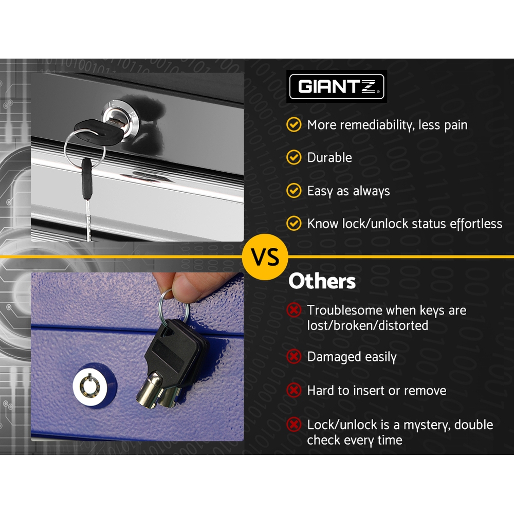 This robust, multi-drawer Giantz Tool Trolley is an essential for any workshop. Crafted from durable steel, it features smooth ball-bearing slides for easy access and a secure lock system for safety. Its spacious design includes varying drawer sizes to accommodate tools of all shapes, complete with non-slip liners. The chest is also mounted on omni-directional castors with locakble front wheels, ensuring a smooth maneuverability and stable positioning. Sleek and functional, it’s perfect for organizing and protecting your valuable tools.
